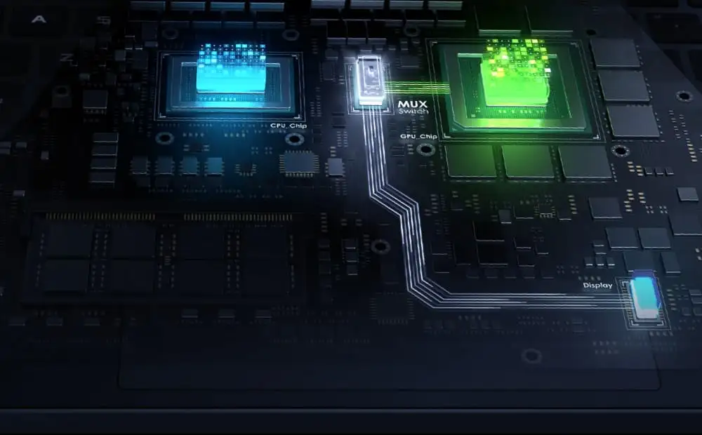 With NVIDIA Advanced Optimus, the laptop can automatically route frames from the discrete GPU directly to the display using a MUX Switch, bypassing the integrated graphics. This pathing improves performance by 5-10% compared to machines without a MUX Switch, making sure you get the absolute best gaming experience - all without needing touch a single button.
