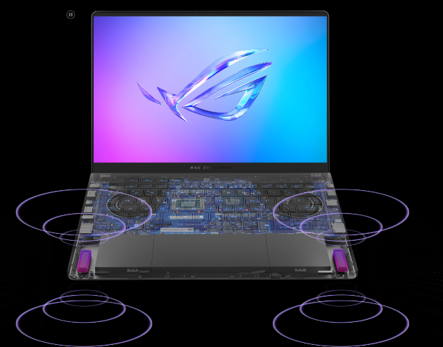Sometimes, bigger does mean better. The Zephyrus G14 has 125% larger woofers compared to the previous generation. This huge increase allows for both louder volumes and clearer and richer sounds at lower volumes. These woofers are also able to hit much lower frequencies, for deeper bass tones than you'd expect from a thin-and-light-laptop.