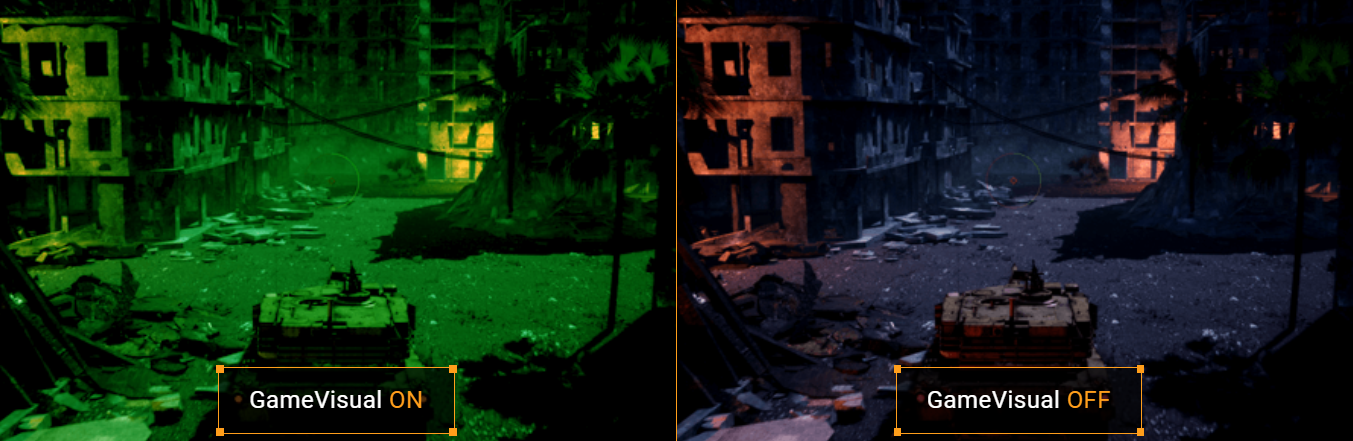 Enhances dark scenery gaming experience by using night vision goggles mode.