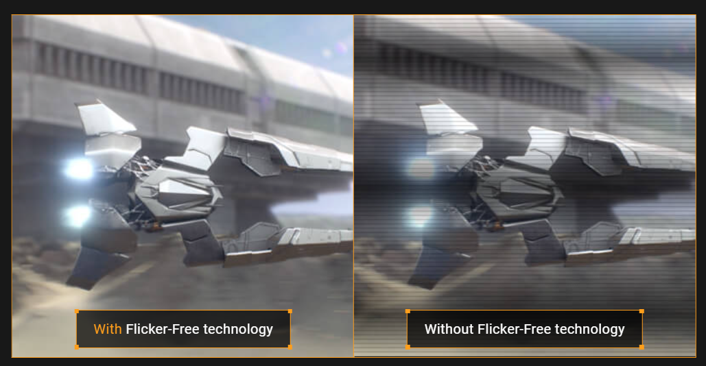 Flicker-Free technology reduces flicker to minimize eyestrain, helping ensure comfort during long gaming sessions.