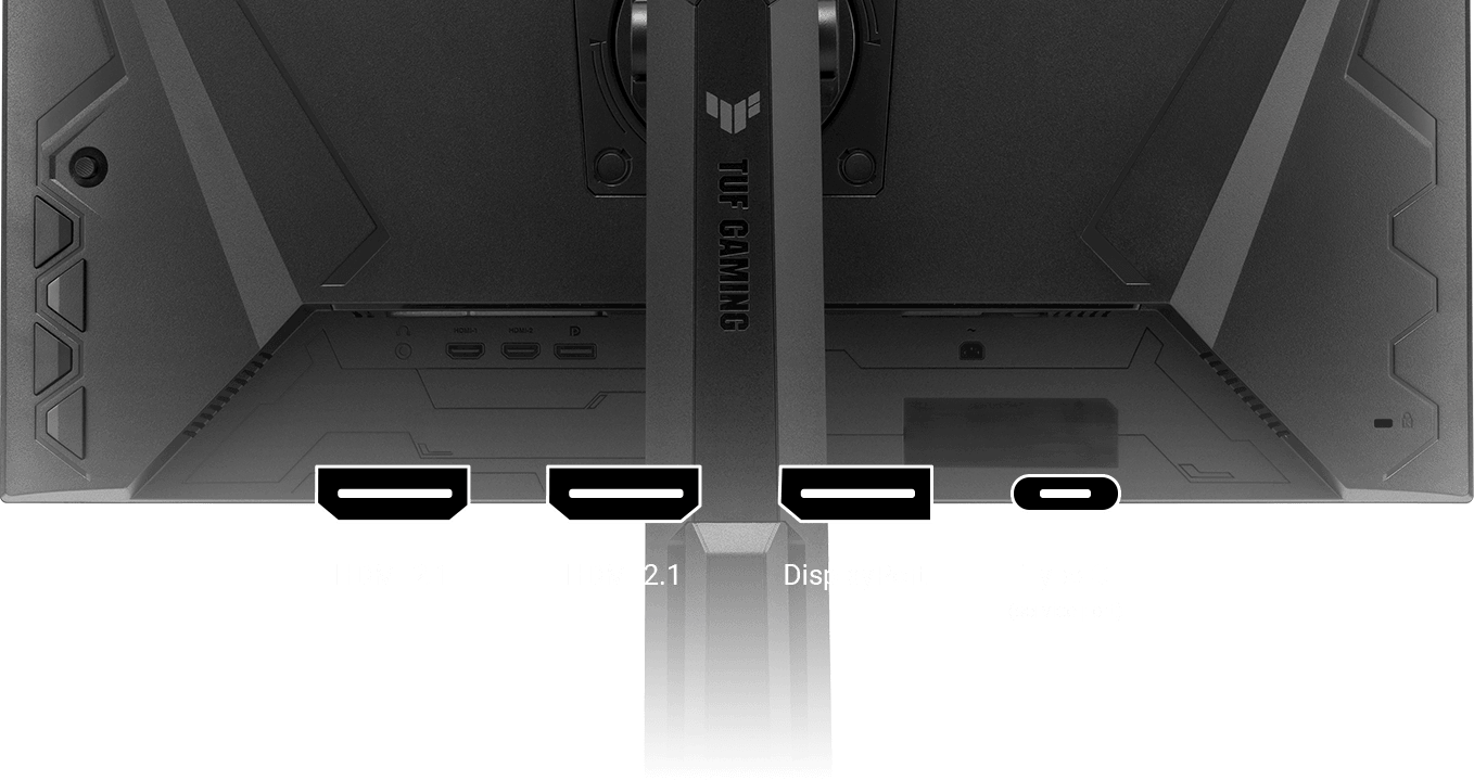 A multitude of connectivity options includes two HDMI 2.1 ports, a DisplayPort 1.4, and a USB Type-C port, ensuring wide compatibility with a variety of input sources.
