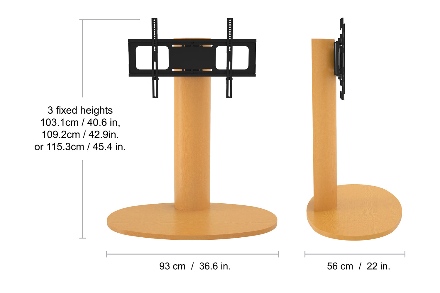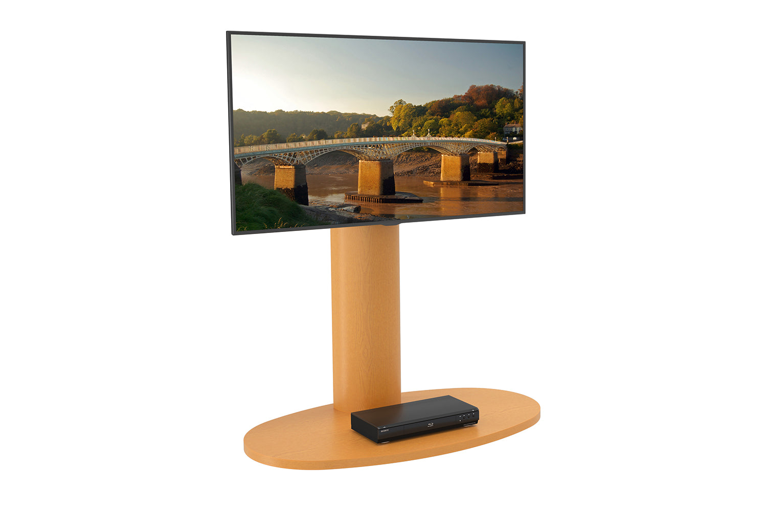 Chepstow One is a stylish free standing column in beautiful real wood veneer, designed for TVs 32-65″ and up to 45 kg in weight. This stand allows you to turn your screen 45 degrees for comfortable viewing angles. The oval shape of Chepstow’s base makes it perfect for positioning in the corner or flat against the wall, and cables can be hidden behind the column for a tidy look. Secure AVF mounting technology protects your TV from accidental knocks or tip-overs.