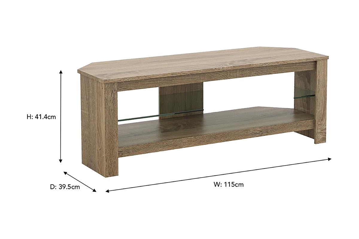 AVF Calibre Plus 1.15m TV Stand with Glass Shelf for TVs up to 55" | Rustic Sawn Oak | CA115GOX