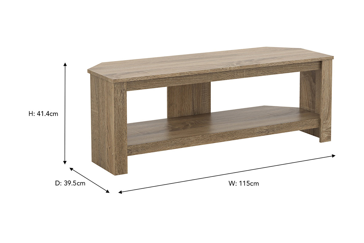 A beautifully constructed TV stand finished in a naturally attractive Rustic Sawn Oak effect, Calibre’s minimalist design makes it a great piece of furniture for any room setting. Designed to fit equally well flat against a wall or in the corner of the room, providing ample space for your TV and home entertainment equipment. Assembly is quick and easy, and all your cables can be kept out of sight behind the rear panel.