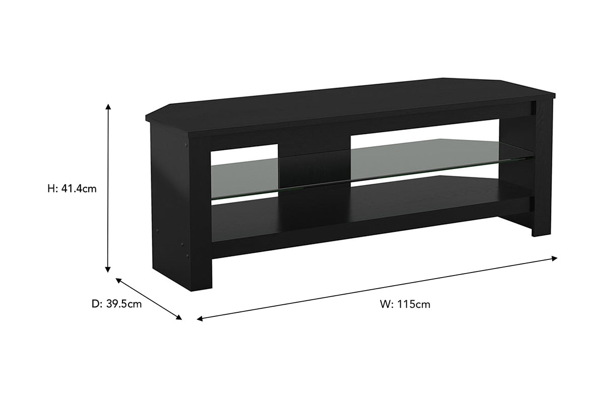 Sturdy construction, finished in a naturally attractive black oak wood effect veneer with a toughened glass shelf which provides an elegant way to support your consoles and media players.