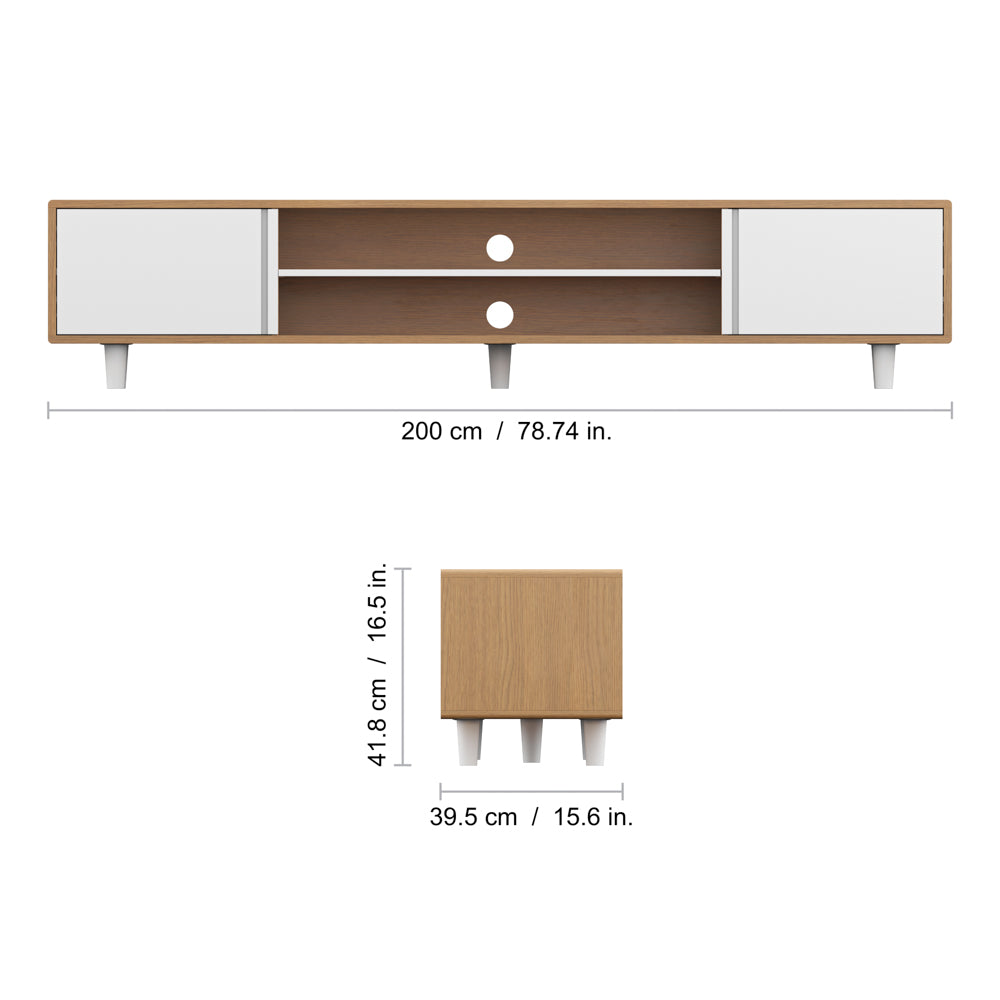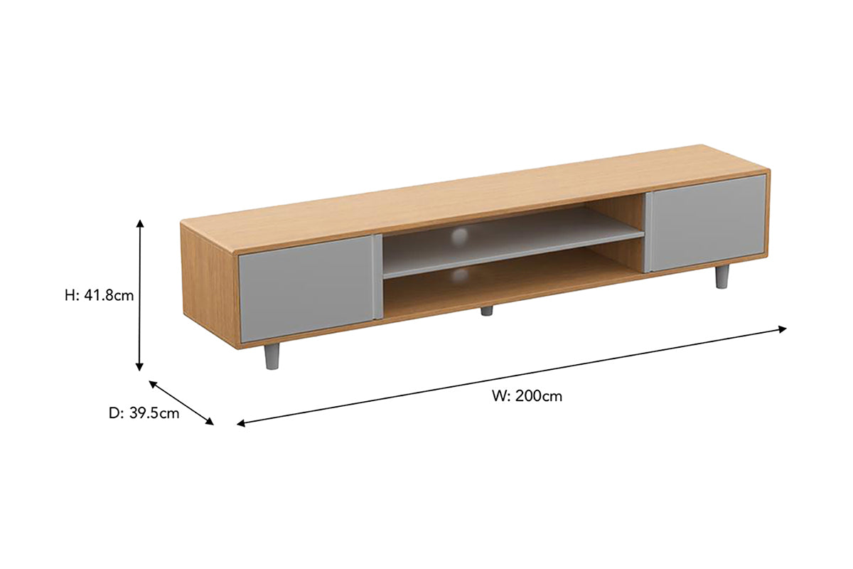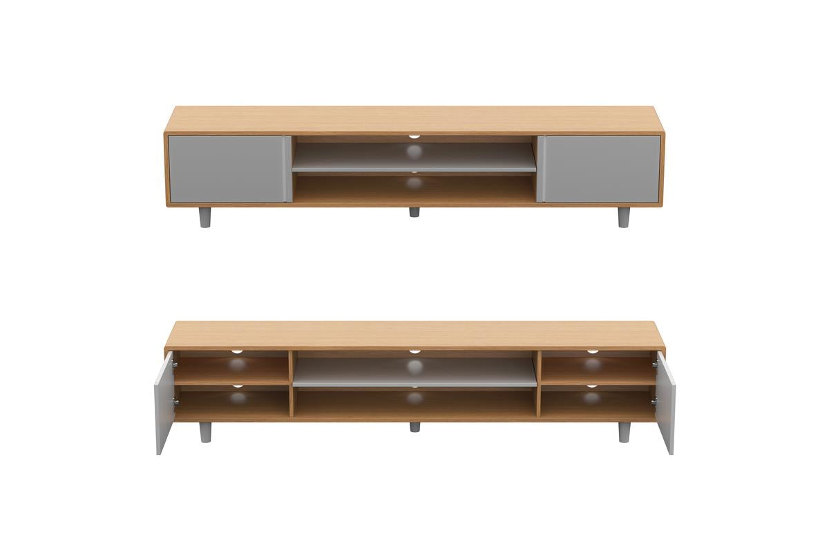 Finished in a beautiful light wood effect with contrasting light grey doors, shelf and legs. Harbour is extremely easy to assemble and features both open and closed storage with thoughtfully placed cable management holes and wide a central shelf perfect for housing a soundbar.