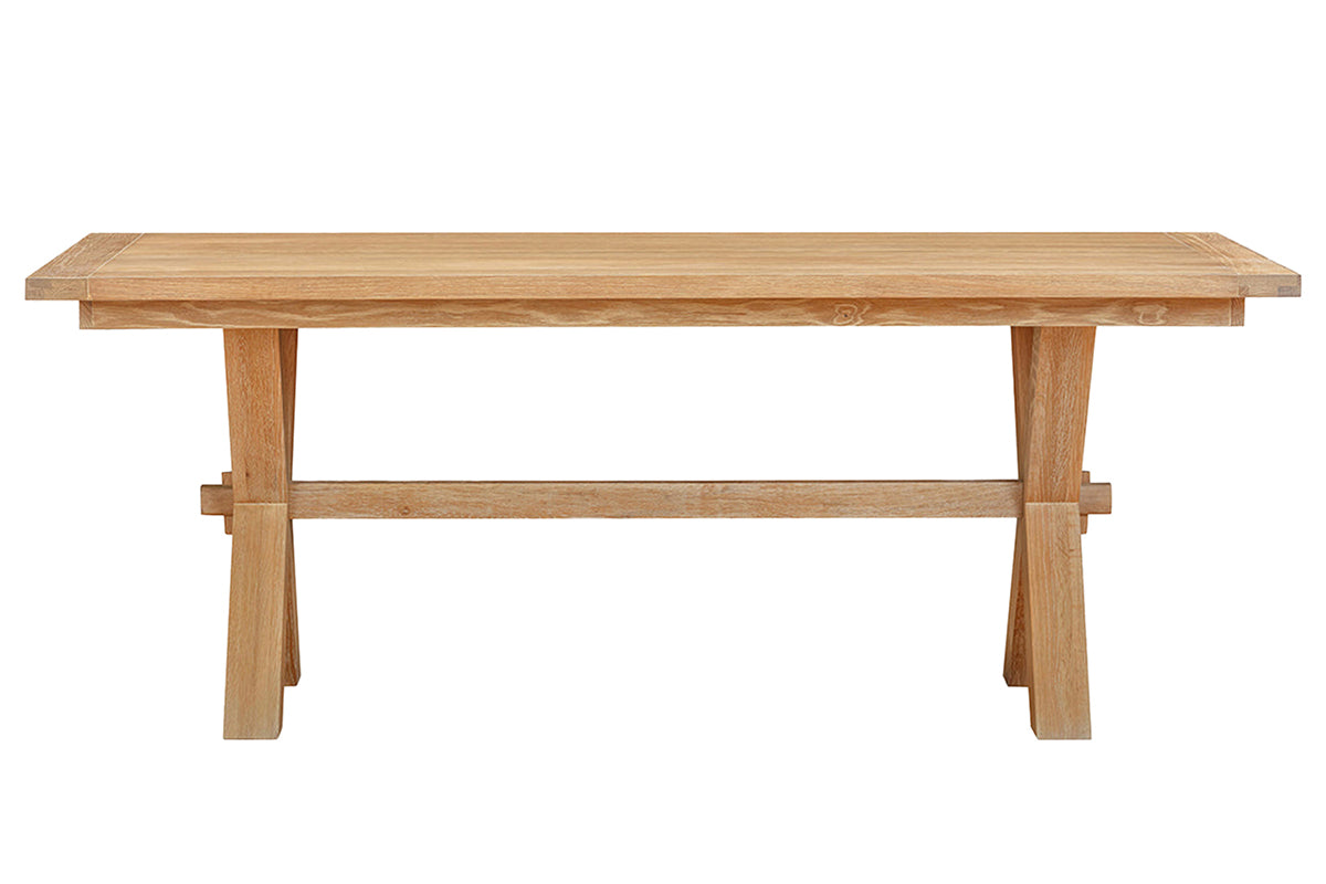 Versatile, practical, and effortlessly elegant the Ayden dining table is crafted from solid oak wood that exemplifies a neutral paired back living. It comes in a natural hue with a brushed glaze finish enhancing all the knots and grain details of the wood creating a unique piece. It rests upon cross shaped legs with a supporting brace for a contemporary feel and long-lasting support.