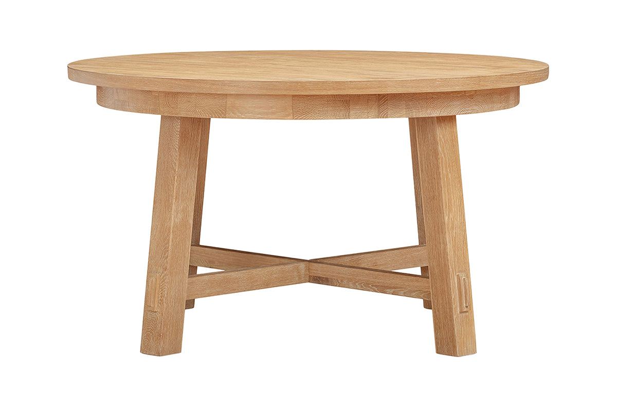 Versatile, practical, and effortlessly elegant the Ayden round dining table is crafted from solid oak wood that exemplifies a neutral paired back living. It comes in a natural hue with a brushed glaze finish enhancing all the knots and grain details of the wood creating a unique piece. It rests upon cross shaped legs with a supporting brace for a contemporary feel and long-lasting support.