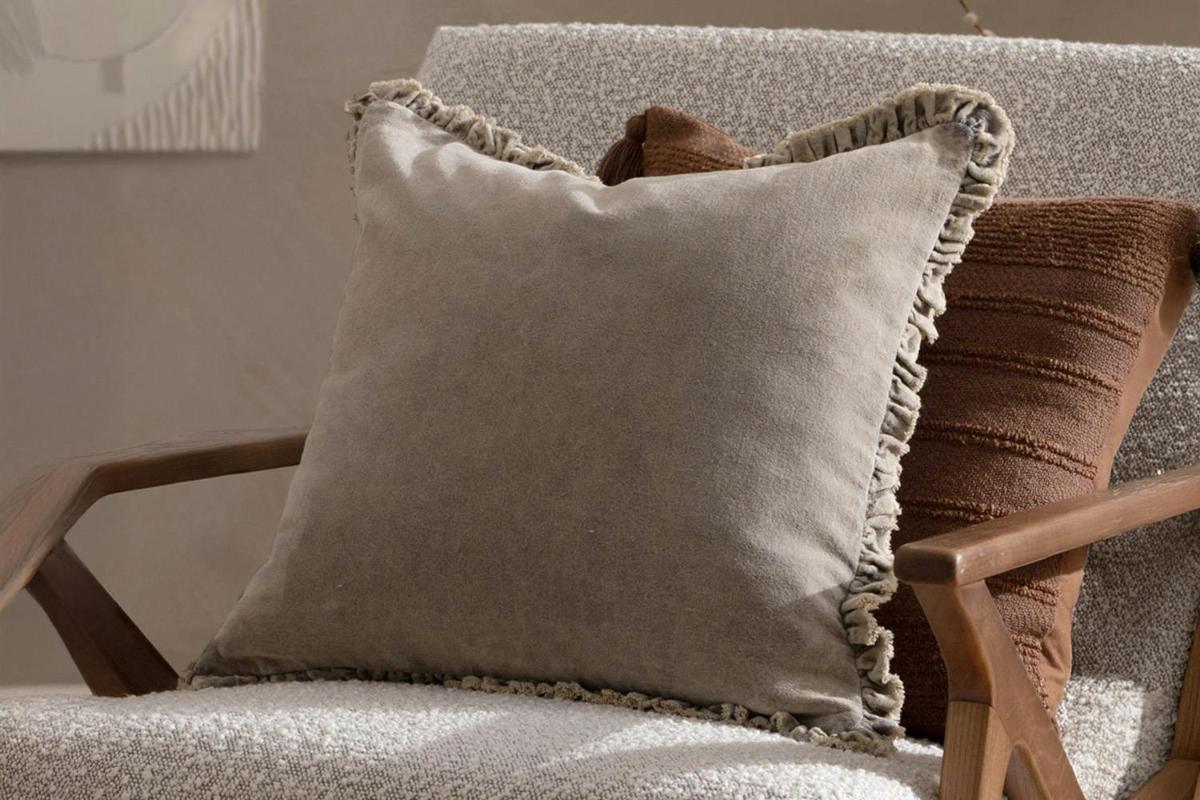 Relaxation and durability combine to great effect on the Bertie cushion. Rest your head against the enzyme washed cotton velvet, which is in a simple, relaxed design, while the reverse is made of a more hard-wearing cotton. The frayed, fringed edging complements the design, which is completed by a zip fastening. A great versatile cushion to add to a contemporary living space.