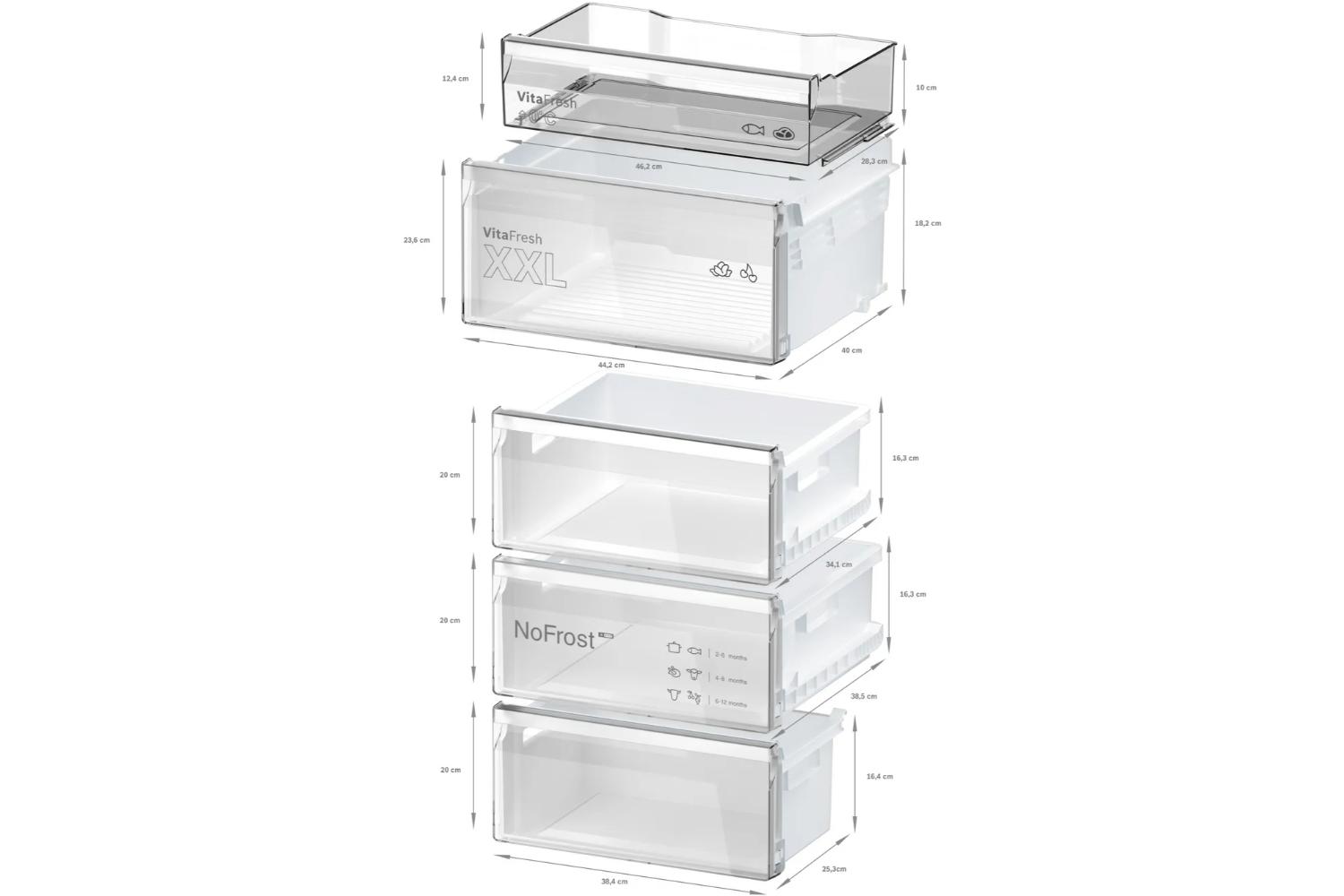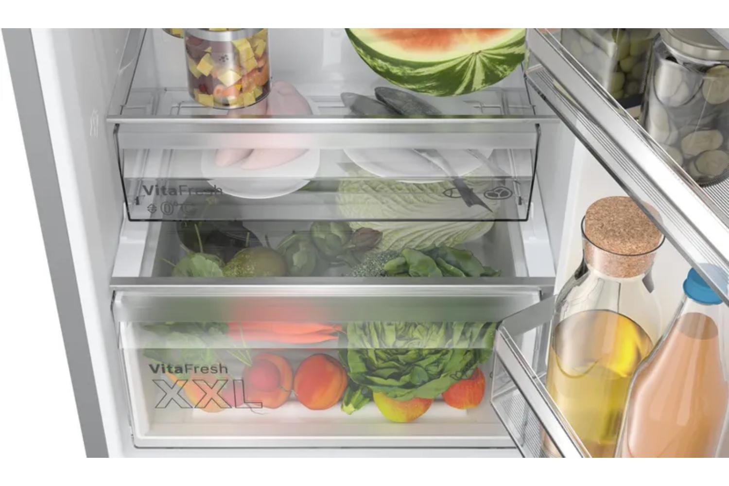 The spacious VitaFresh XXL Pro 0°C system offers the ideal storage environment for your fresh food thanks to climate control and 0°C technology. You’ll find two drawers, one for fish and one for meat, with a temperature regulating slide which lets you lower the temperature up to 4˚C lower than the rest of the fridge. This means you can store meat and fish at a cooler temperature, while your fruit and vegetables are looked after in the climate-controlled drawer for maximum freshness, helping to keep them fresh for longer.