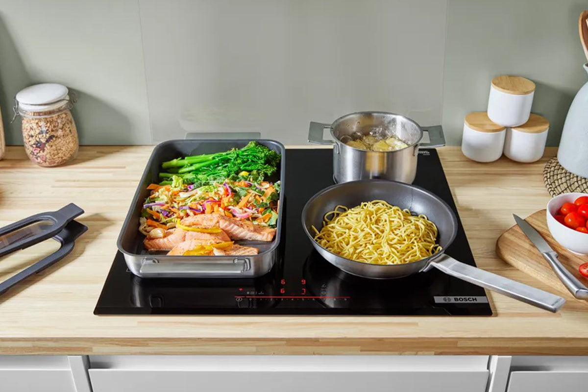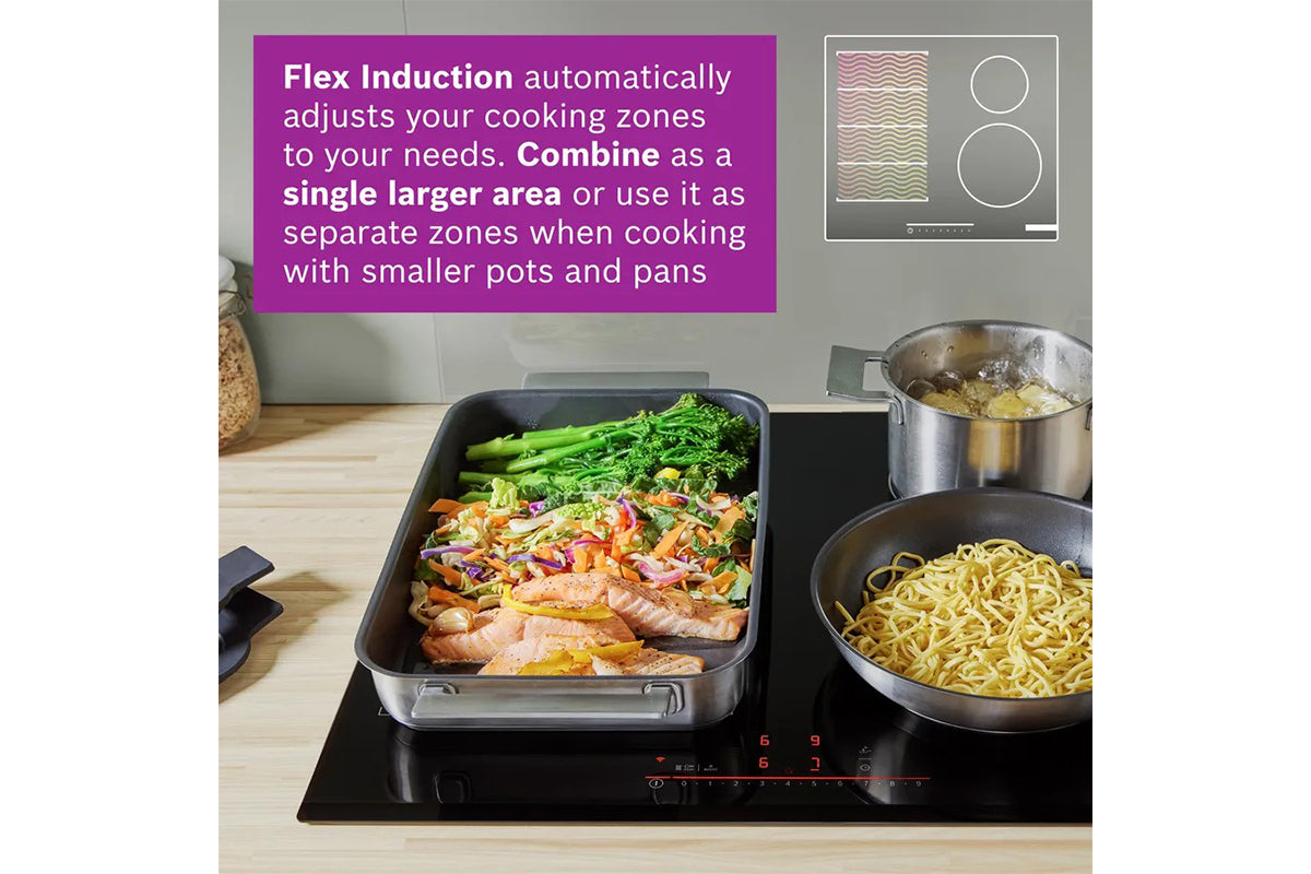 FlexInduction lets you combine two zones into one evenly heated surface. Your hob automatically detects the size and position of cookware that’s in the zone. Whether you want to make a pot of espresso, or warm a large roasting tray, your hob heats all types of cookware precisely and efficiently.