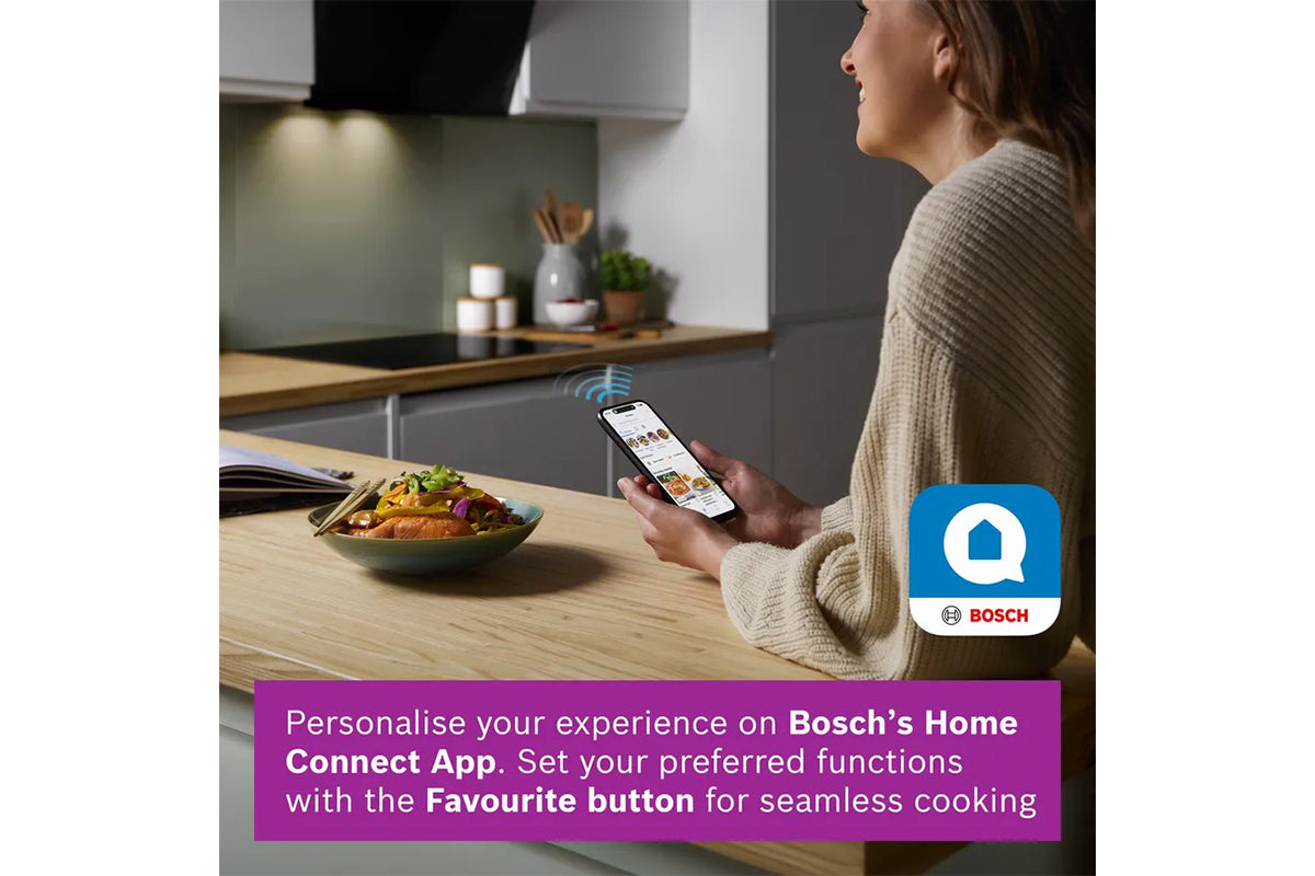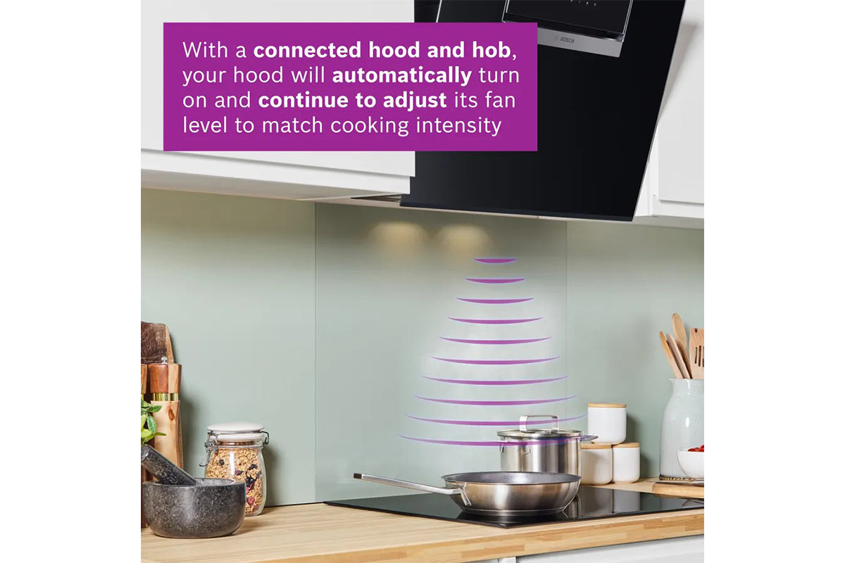 Now all you need to focus on is cooking your favourite dish. Your matching hood is automatically controlled by your hob and a connected Home Connect account. This is all thanks to an algorithm that adjusts the power of your hood, based on your hob settings. Your kitchen stays free of odours and vapour, and the hood stays free from finger prints. Welcome to the easy way of cooking.