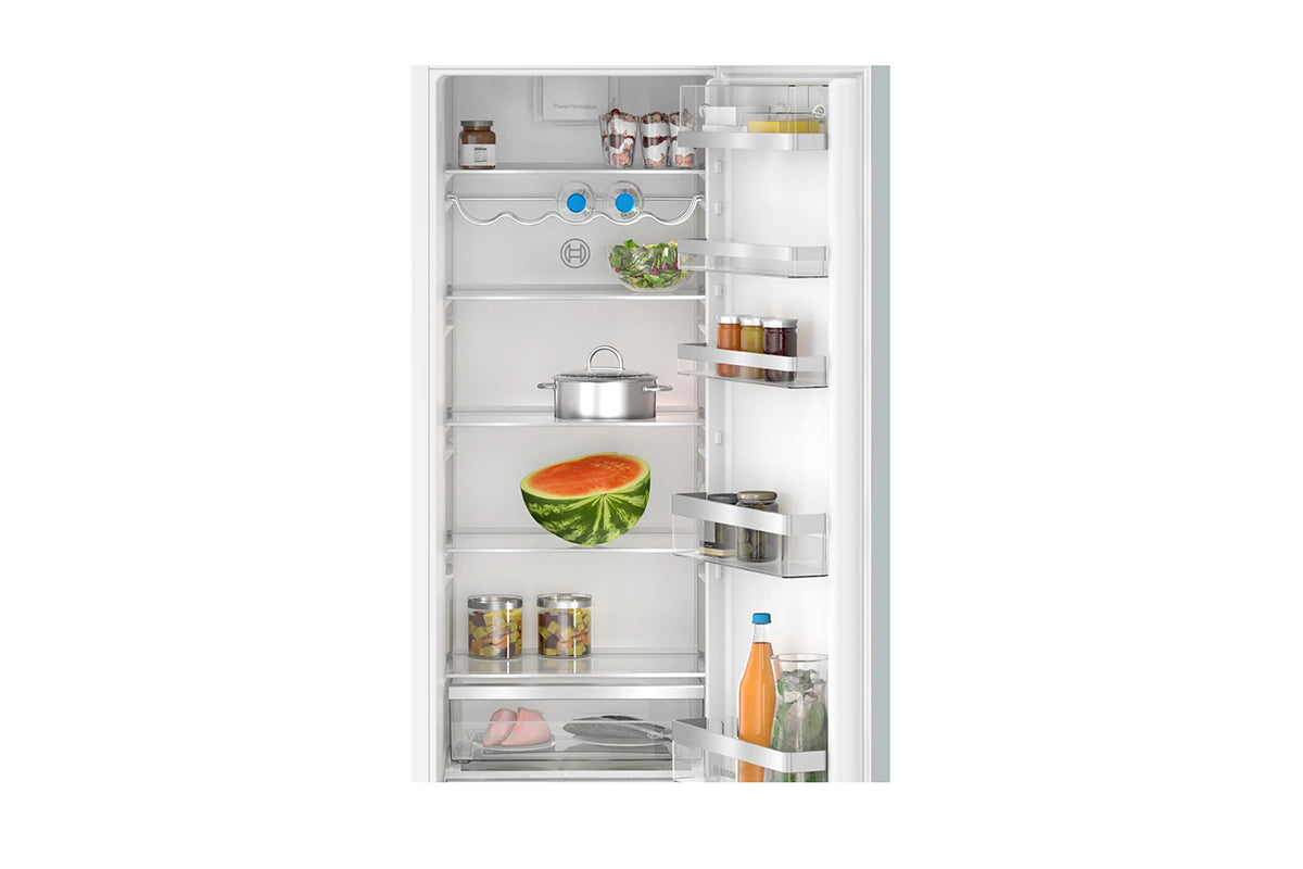 Adding new food to the fridge can raise the internal temperature, which can impact the existing food. With Super Cool, the fridge temperature can be lowered for a short period of time, in preparation for adding new items. If your appliance is paired with the Bosch Home Connect app, you can activate the Super Cool function either by using the app or with voice control.