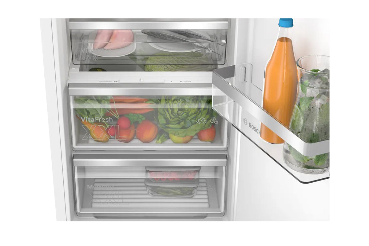 The spacious VitaFresh XXL Pro 0°C system offers the ideal storage environment for your fresh food thanks to climate control and 0°C technology. You’ll find two drawers, one for fish and one for meat, with a temperature regulating slide which lets you lower the temperature up to 4˚C lower than the rest of the fridge. This means you can store meat and fish at a cooler temperature, while your fruit and vegetables are looked after in the climate-controlled drawer for maximum freshness, helping to keep them fresh for longer.