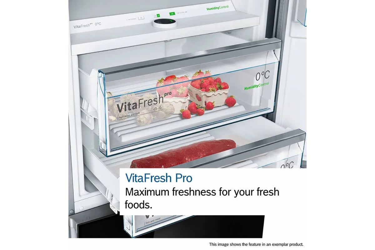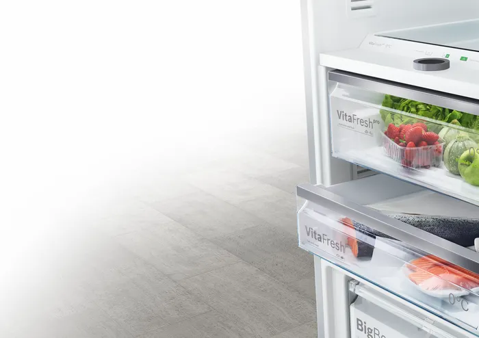 The VitaFresh pro system offers the perfect storage environment for all your fresh food thanks to climate control and +0°C technology. You can store meat and fish at a cooler temperature, while your fruit and vegetables are looked after in the climate-controlled drawer for maximum freshness, helping to keep them fresh for longer. More food to enjoy, less food wasted.