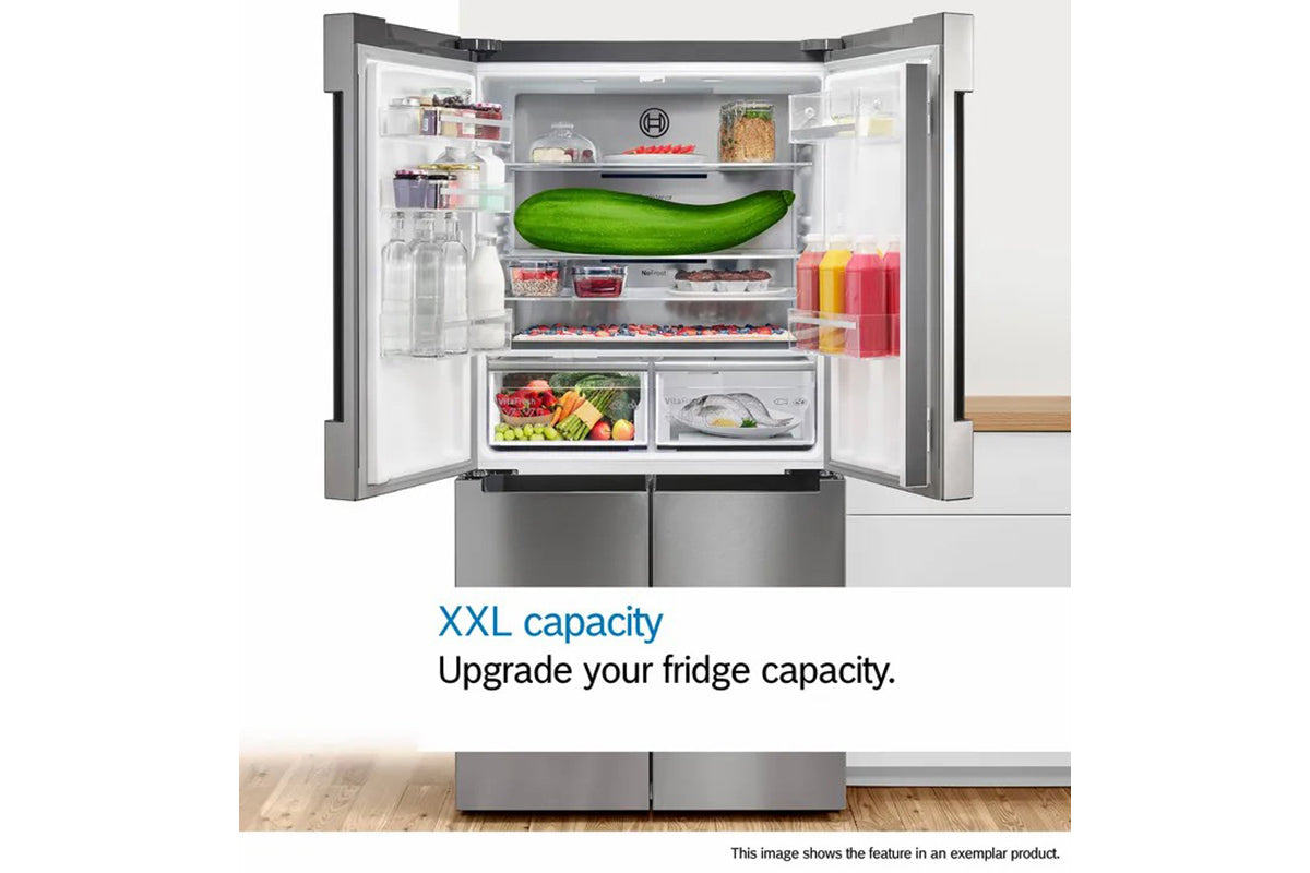 Bosch XXL capacity multi door fridges-freezers deliver space without taking up too much room in your kitchen. Just slightly wider than a standard model, the appliance allows you to fit whole baking trays, large pots and other bulky items inside. Giving you ultimate storage flexibility.