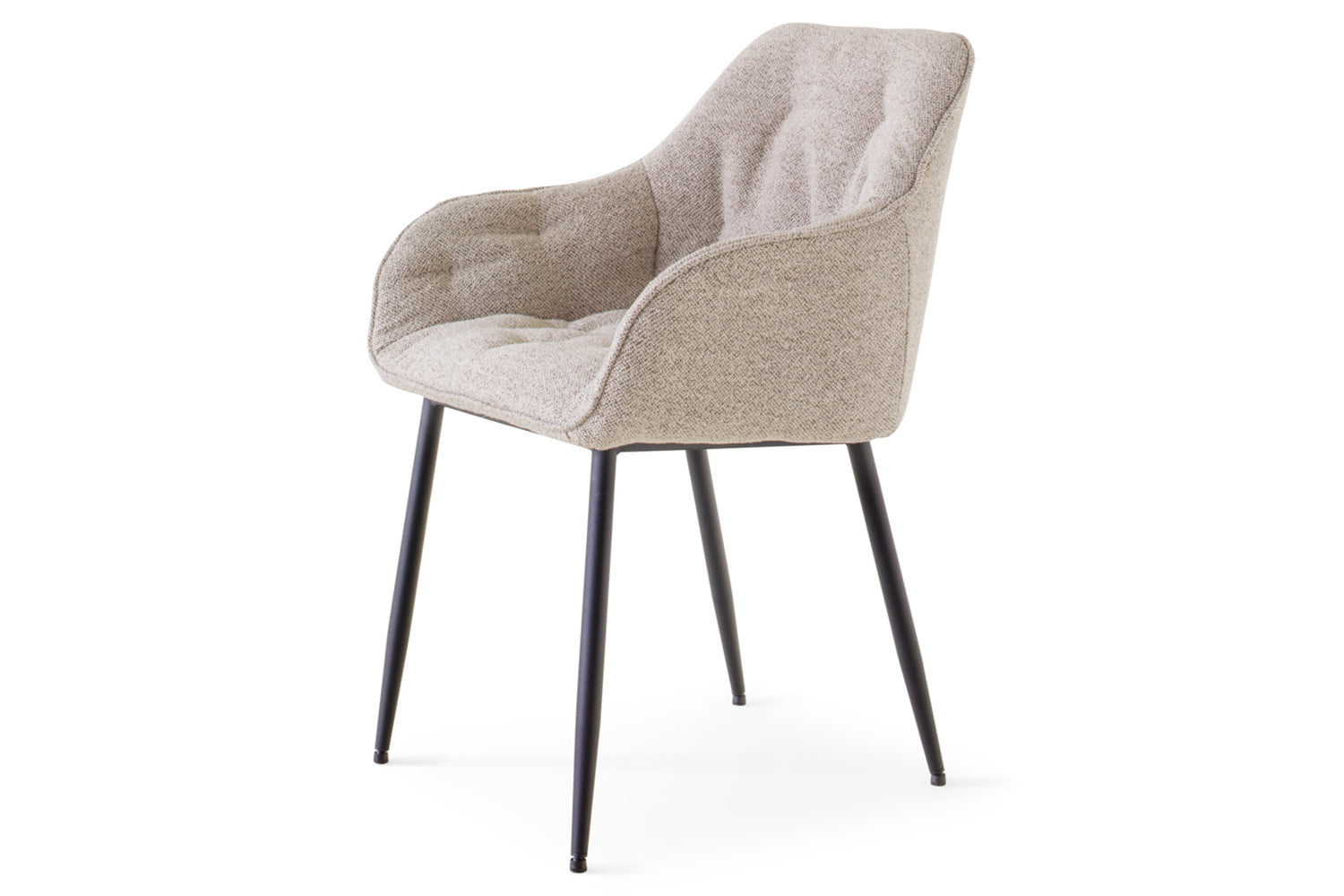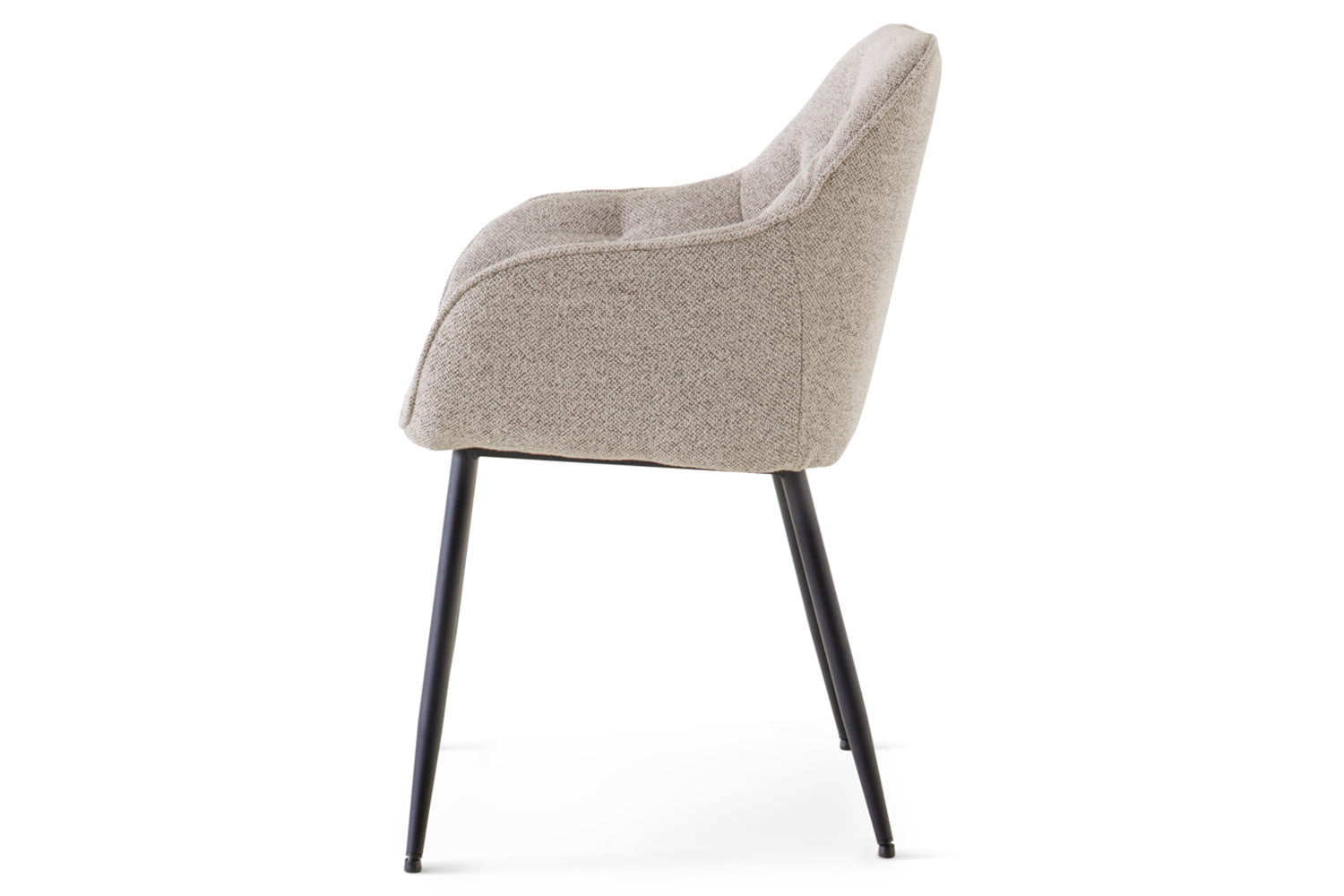 Add character to your dining area with the elegant Brooke dining chair. It has a timeless silhouette and is upholstered in soft midnight blue velvet fabric offering a rich tactile experience. Perched on round black metal legs with a rough powder coated finish that give this chair a modern look. The seat is also decorated with tufting to give it extra texture making it the perfect companion for long dinners.