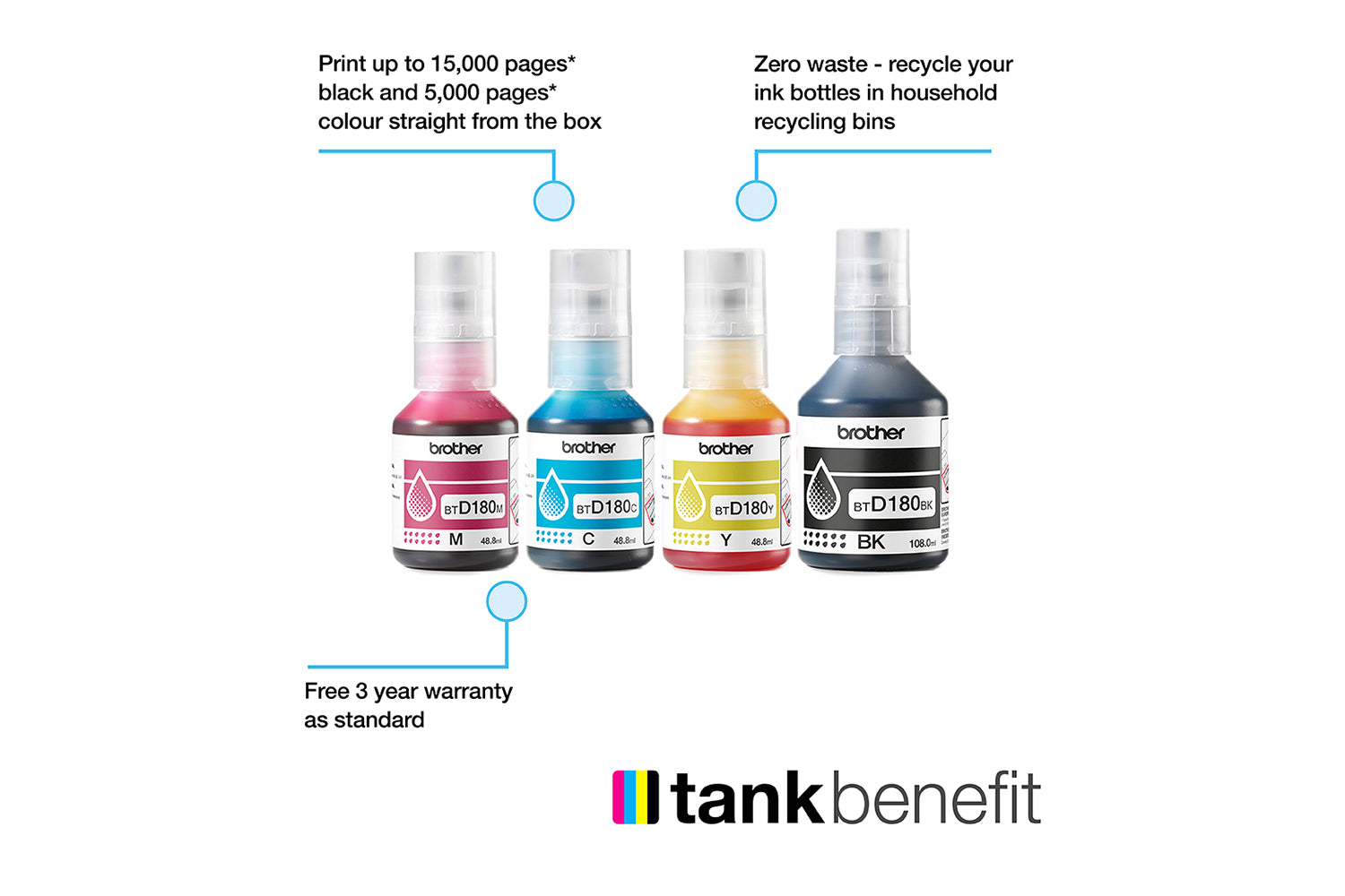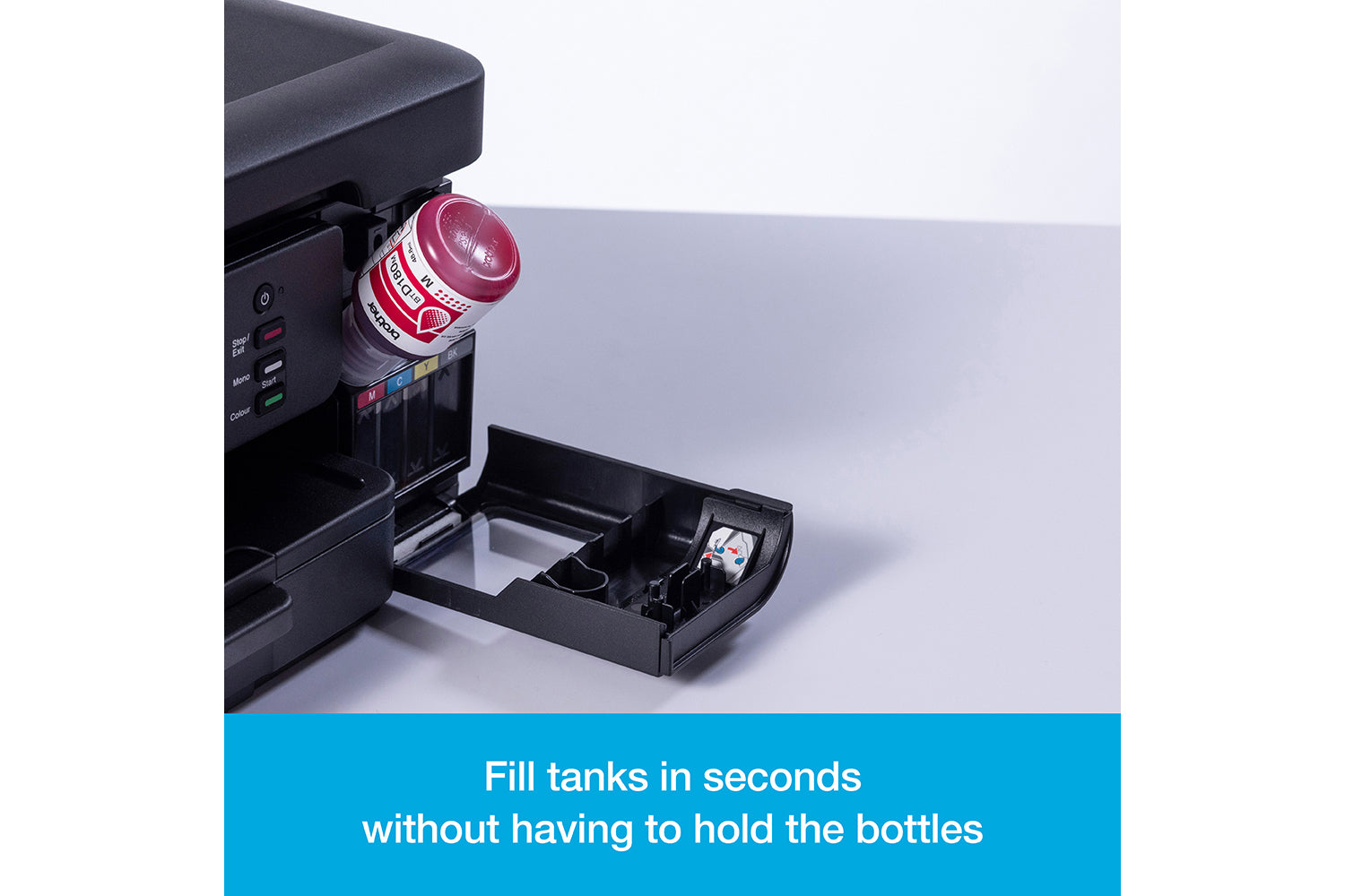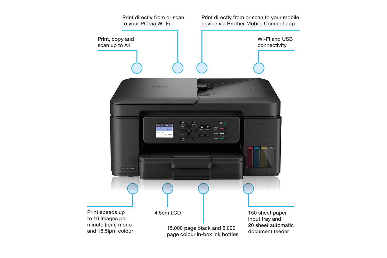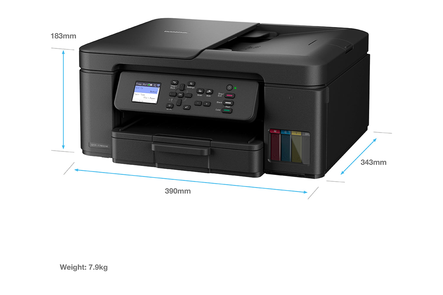 Fill up and print more for less with super high yield ink bottles and easy fill ink tanks that lower your colour printing costs. Whether in your home office, living room, or working from the kitchen, enjoy effortless connectivity and quick hassle-free printing with the 3-in-1 ink tank printer DCP-T780DW. Print directly from or scan to PC and mobile app.