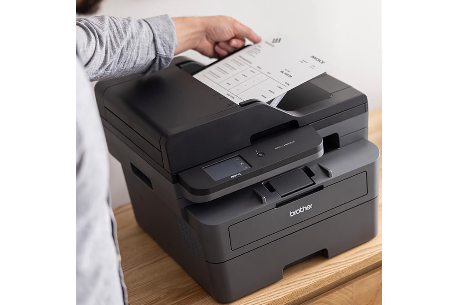Work smarter from anywhere at home or in the office with the easily connected Brother MFC-L2860DWE. Hosting a range of efficiency-boosting features, this multifunction mono laser printer saves you time with fast flawless printing and quick scan speeds, automatic 2-sided print, fax capability, a generous paper tray capacity and large automatic document feeder. Get working easily and download the Brother Mobile Connect App, enabling you to print and scan from virtually anywhere.
