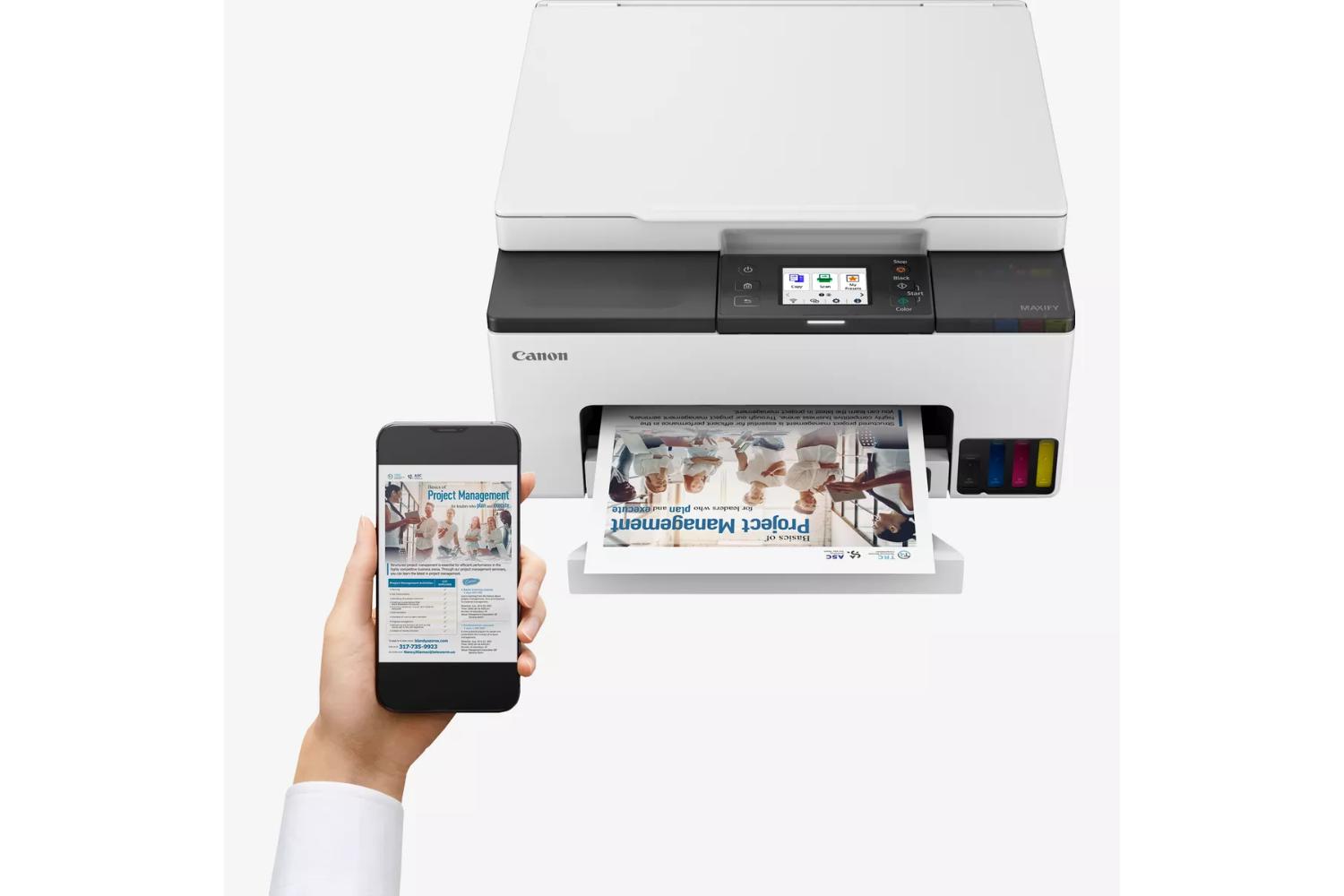 Bring the office experience home with this compact 3-in-1 MegaTank printer. Print large volumes of high-quality business documents quickly with affordable ink bottle replacements.