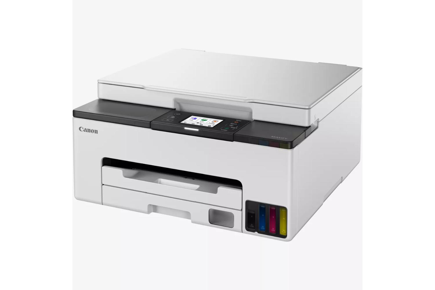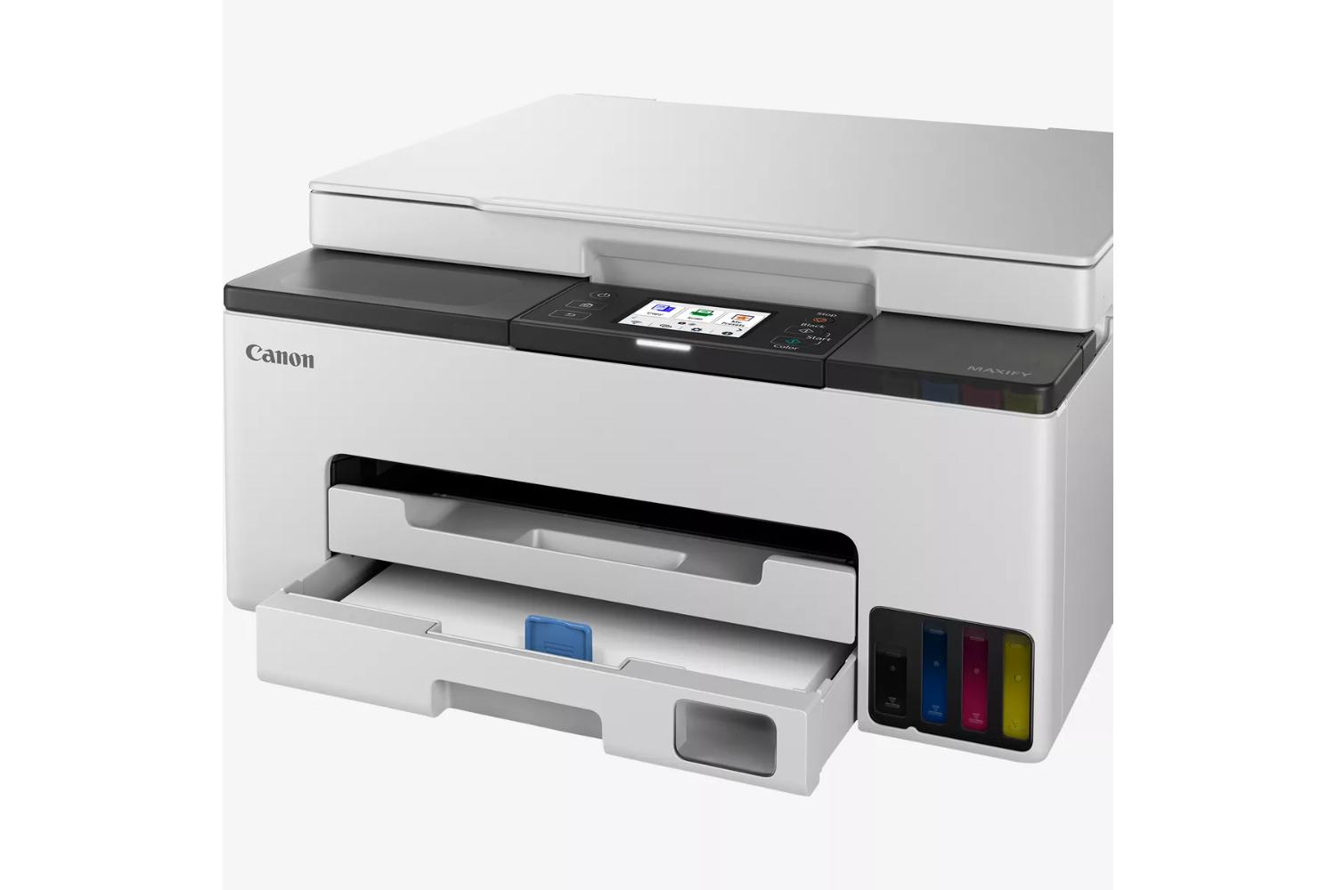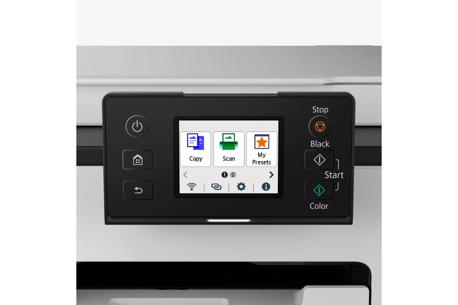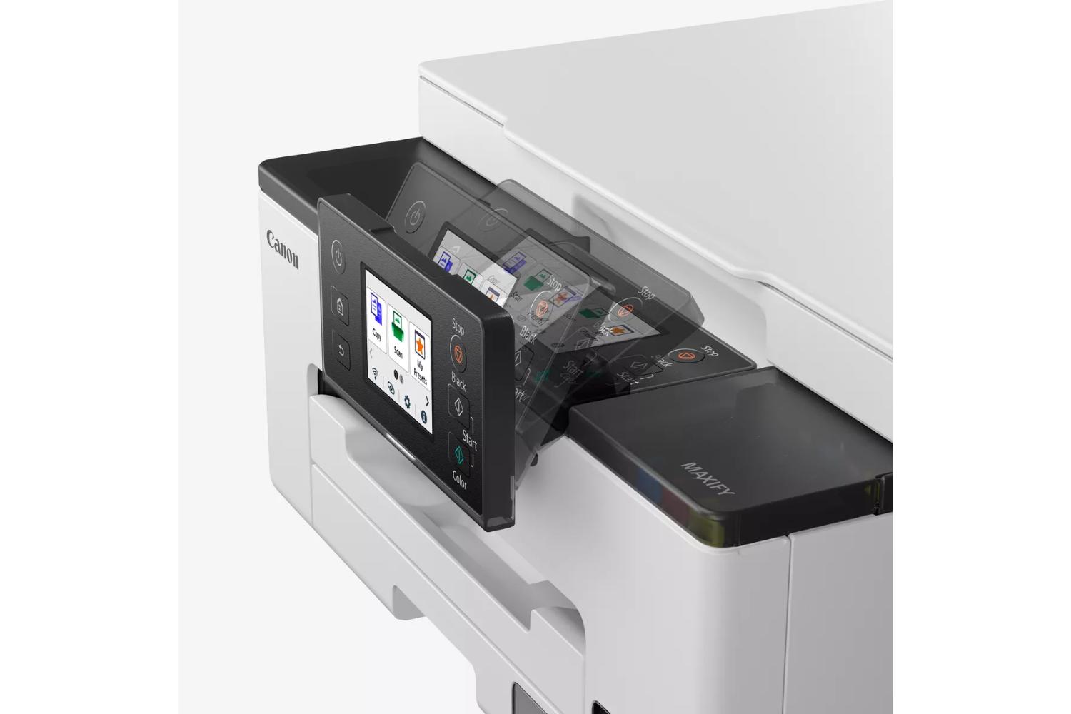 Compact, secure and user-friendly, this 3-in-1 printer gives home and hybrid workers the full office experience. The MAXIFY GX1050 is a perfect print, copy and scan business printer for home use, able to print durable, smudge-free documents quickly and in high volumes, and even scan directly to shared network folders or email. As with all Canon MegaTank models, its individual refillable ink tanks help to keep running costs low, while the tilting 6.7 cm LCD touchscreen makes this small office printer a pleasure to use.