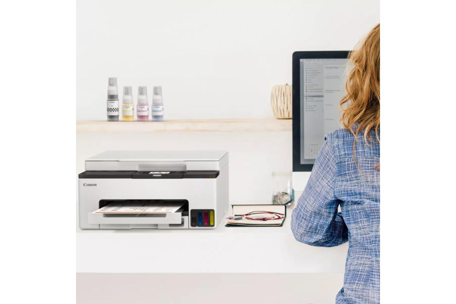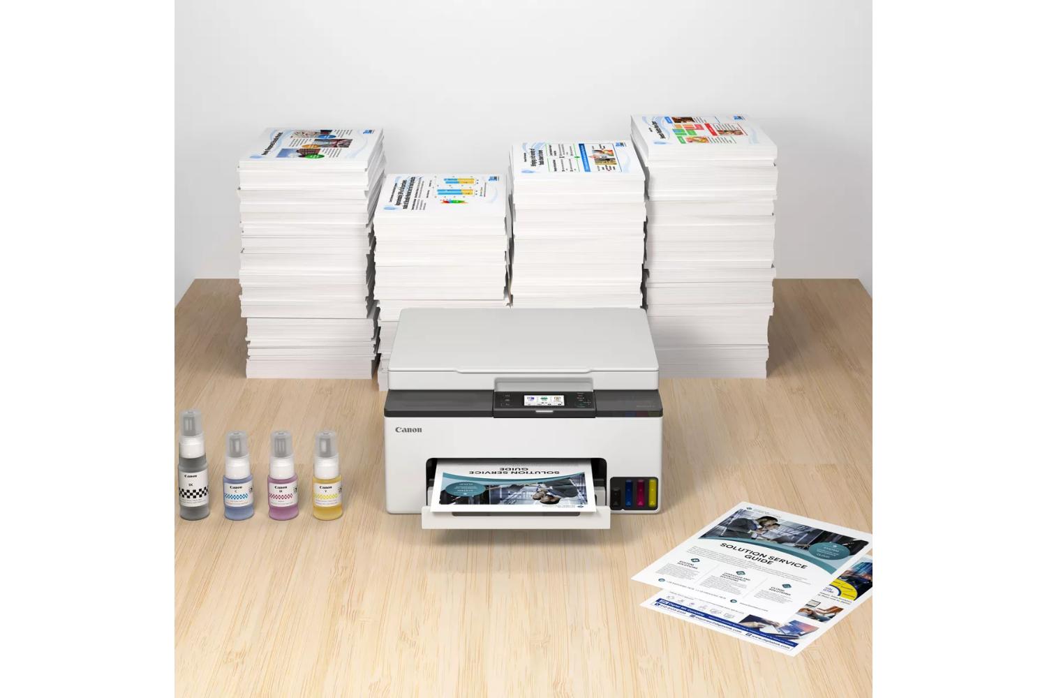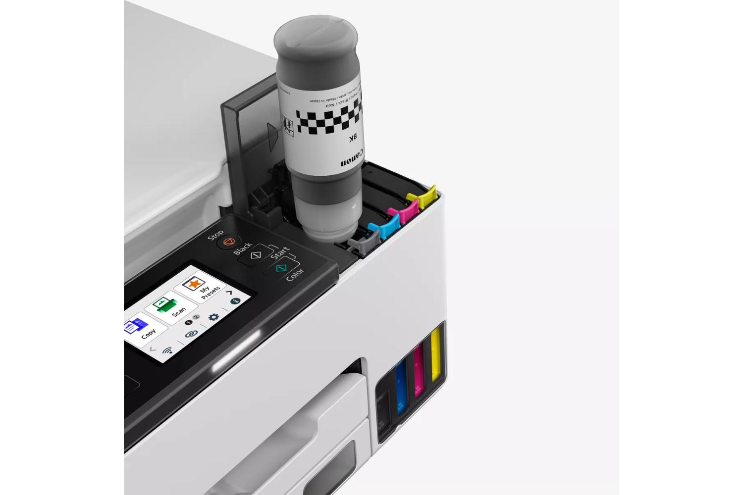 Produce durable business-quality documents in your home with this full front operation multifunction MegaTank printer. MAXIFY GX1050 fits easily in any space due to its compact and user-friendly design. Benefit from fast print speeds and high yields thanks to its four individually refillable ink tanks and affordable ink bottle replacements.