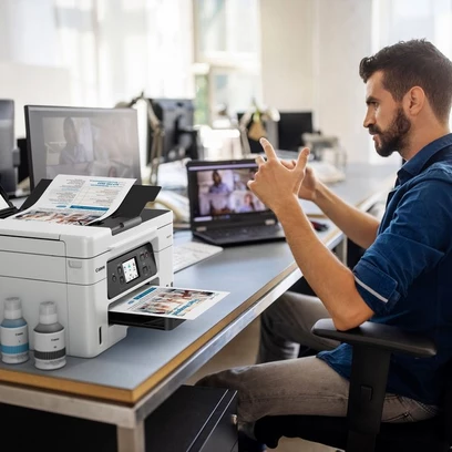 With large tanks and affordable high-yield bottles, the MAXIFY GX4050 printer with refillable ink will help keep your business costs incredibly low. Ideal for home office printing with huge savings on the total cost of ownership¹ and cost per page². Excellent quality business prints are delivered quickly and in high volumes. Effortlessly print, copy, scan and fax with easy multi document management with a 35-sheet ADF. Connect via Wi-Fi or Ethernet and easily integrate into your home office thanks to a compact size and simple self-maintenance.
