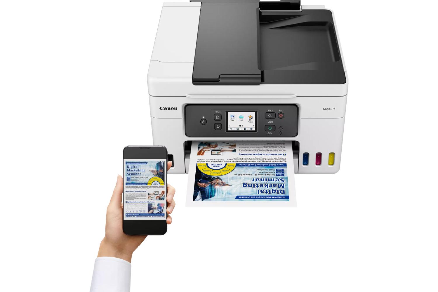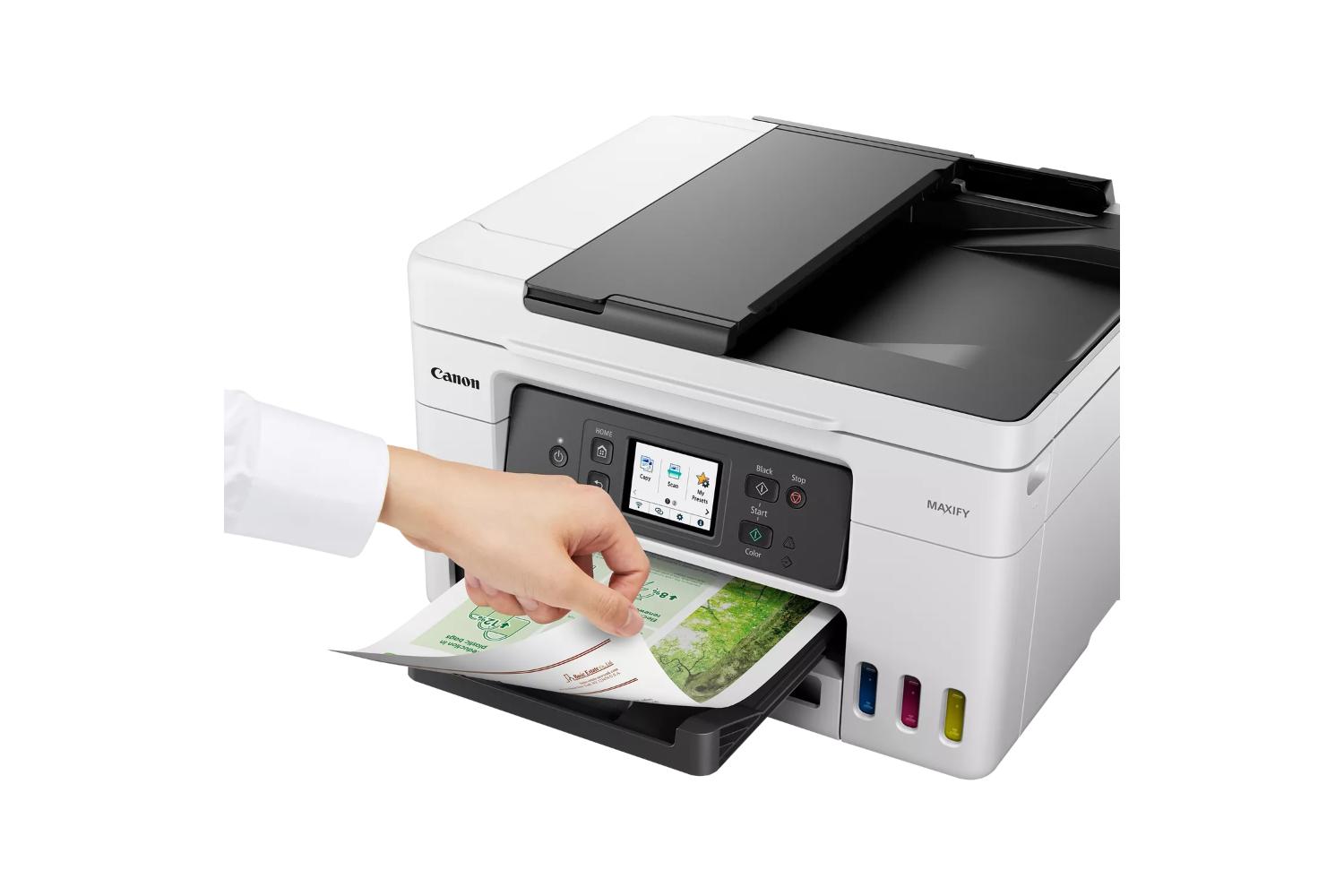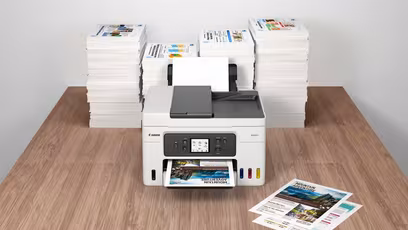 Print large volumes of high-quality business documents while making huge savings on CPP1 and TCO2 with this refillable and easy to use 4-in-1 MegaTank-equipped MAXIFY GX printer with ADF, Wi-Fi and Ethernet.