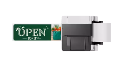 Reduce costs by printing more media in-house. Create high-quality, durable point of sale materials, signage, promotional banners and tags using the rear flat tray, which supports thick paperboard.