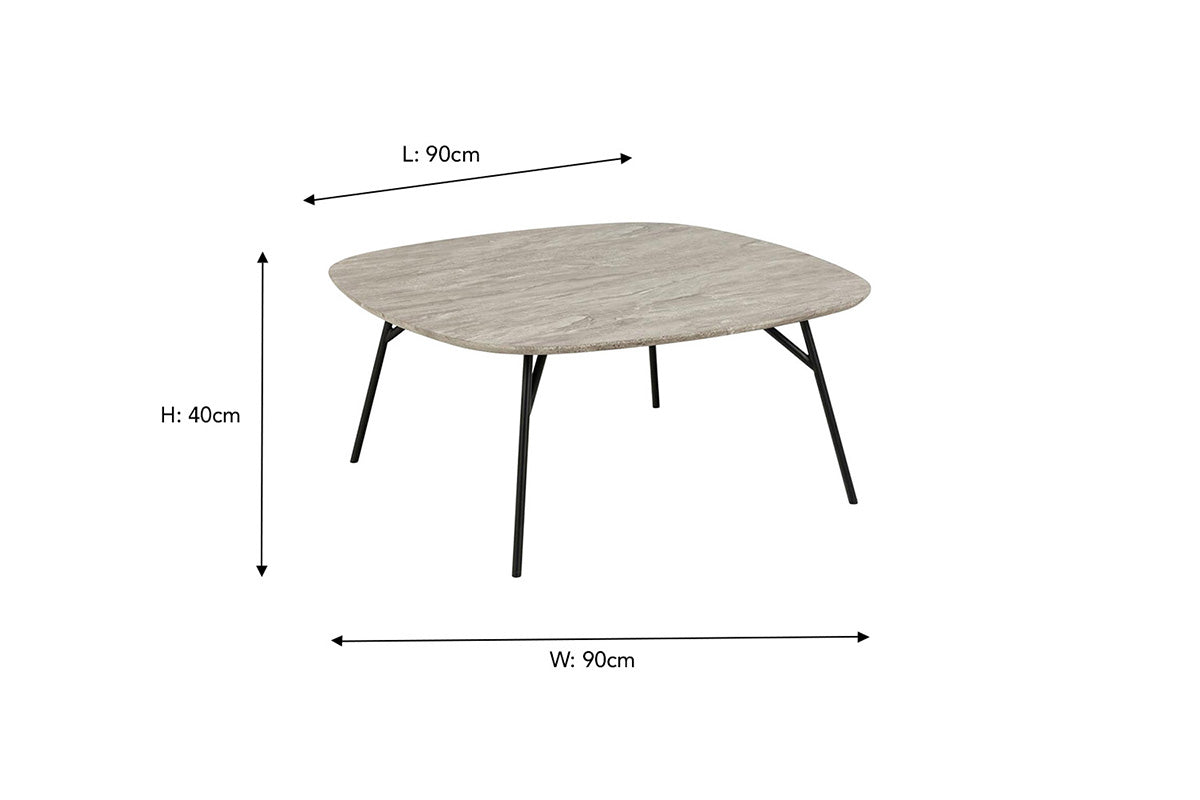 Crafted from wood with a subtle marble look, the Caracas coffee table offers the perfect stylish place to host your beverages, snacks, or lighting. It rests upon black steel legs that offer durability. Available in black or grey, this table easily integrates and complements a wide range of existing décor.