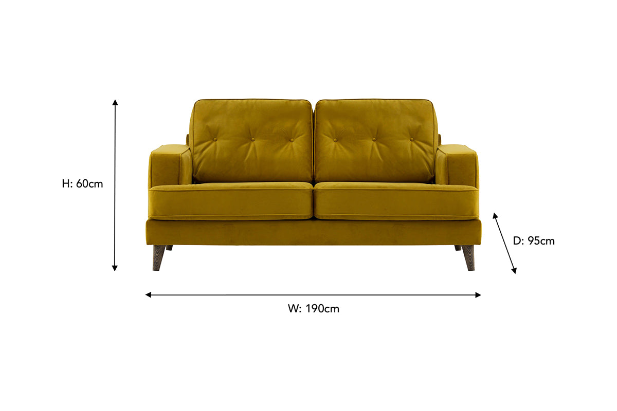 Indulge in lavish comfort with the Charles 3-seater featuring clean lines, buttoned detailing, and tapered wooden feet. Boasting a customisable design, you can really make this piece your own by choosing from the wide range of colours available, giving you the freedom to tailor this sofa to your aesthetic. The foam seating and soft fabric upholstery aid in the comfort and cosiness of this sofa without compromising on style.