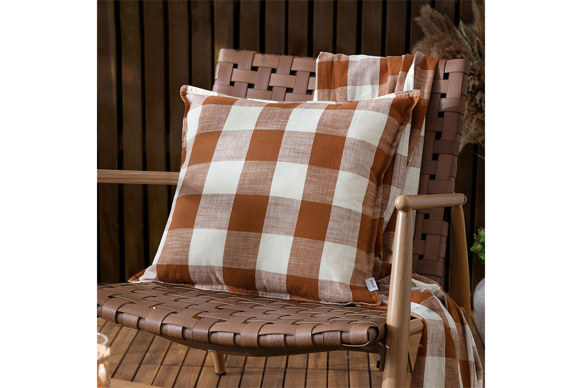 Chesil Check Cushion | Pecan\White | 50 x 50 cm