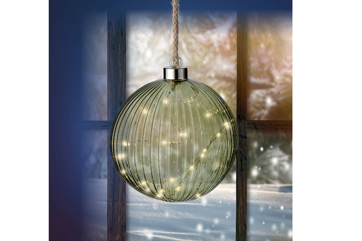 Kaemingk are dedicated to bringing you the very best in home decorations and this Micro LED ball is no exception! Elevate your Christmas tree this holiday season with this exquisite bauble. Designed with a luxurious ribbed pattern, each bauble is adorned with shimmering micro-LEDs that cast a soft, enchanting glow creating a festive atmosphere.