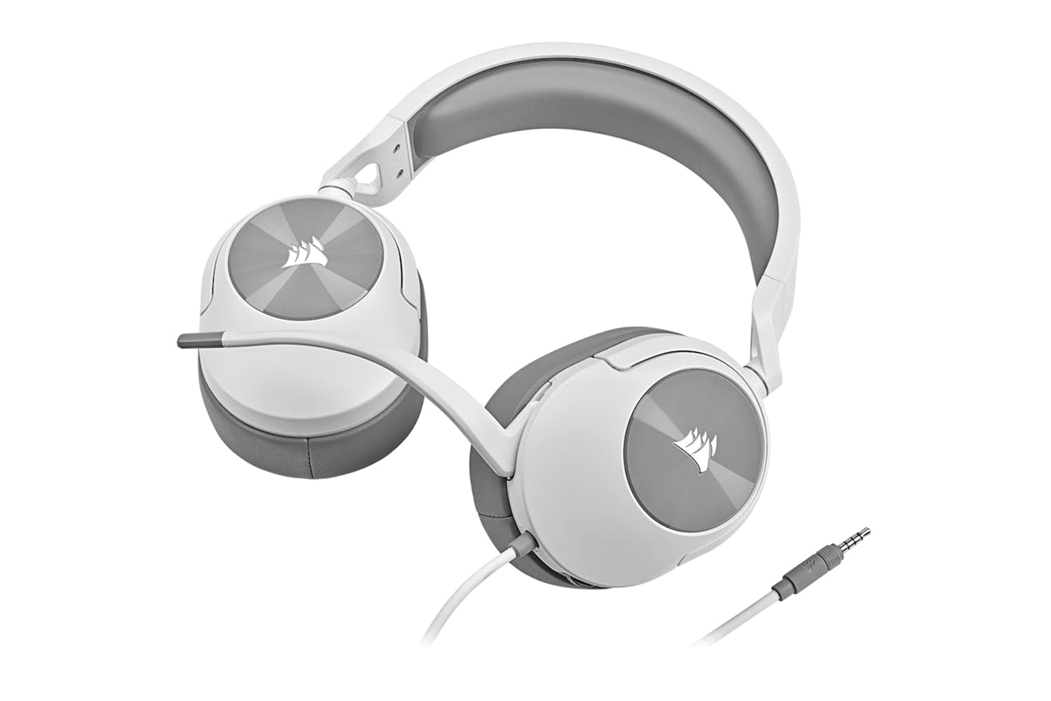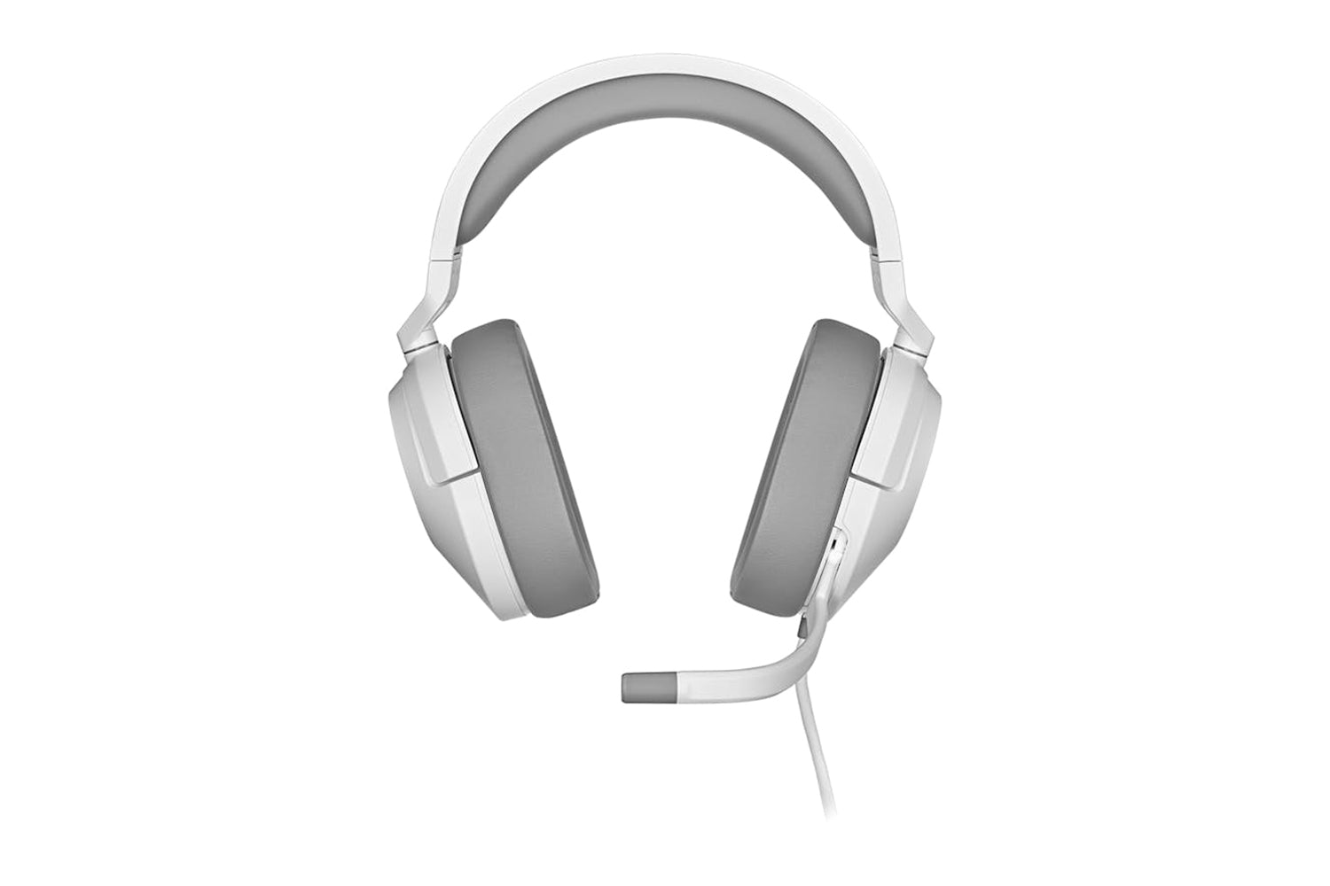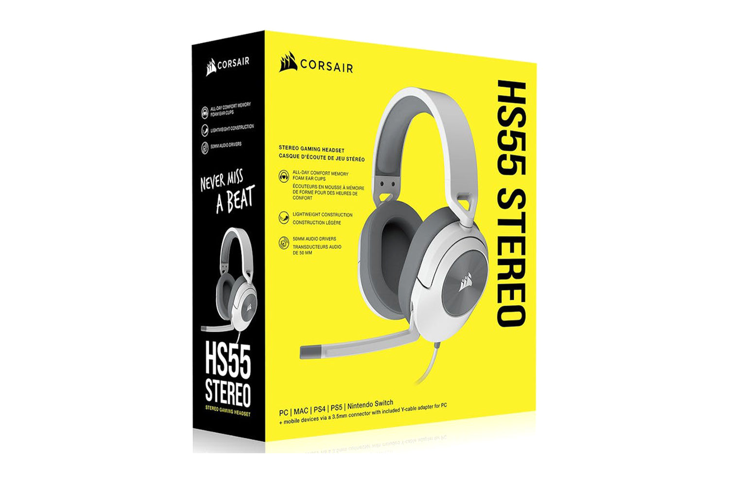 The CORSAIR HS55 STEREO Gaming Headset delivers essential all-day comfort and sound quality with memory foam leatherette ear pads, lightweight construction, and custom-tuned 50mm neodymium audio drivers.