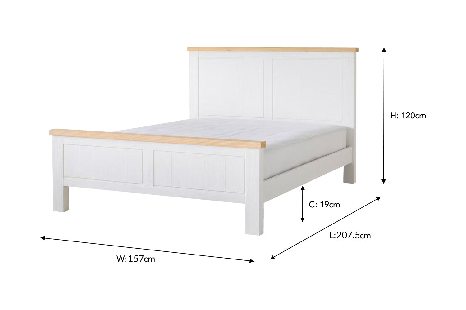 Combining endurance and style, the Cotswold bedframe is destined to become the focal point in your bedroom. Its wonderfully warm pine headboard and footboard tops contrasts the frame’s white painted finish perfectly. While the detailed geometric carvings on both the headboard and footboard elevate this look further. It features a wooden slatted base with centre support legs to ensure this bedframe remains the backbone of your bedroom for years to come.