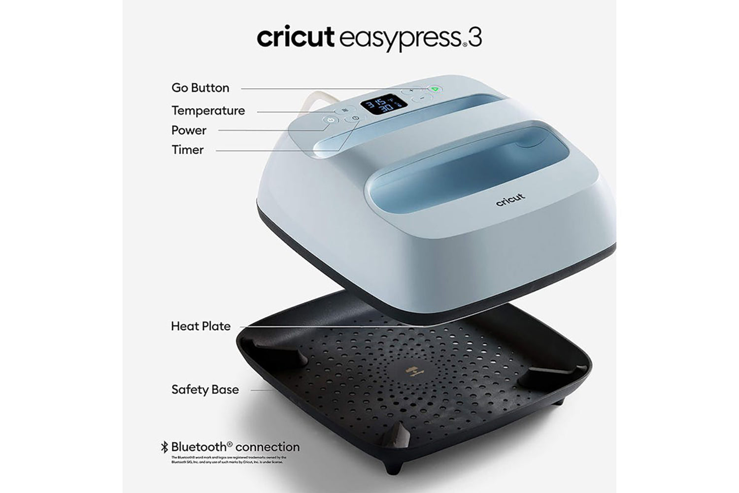 Connect Cricut EasyPress 3 to the Cricut Heat app to send precise time & temperature settings and follow step-by-step guidance for any project. A ceramic-coated heat plate offers a super-fast heat-up up to 400℉ (205°C). Press with peace of mind with an insulated safety base & auto-off feature.