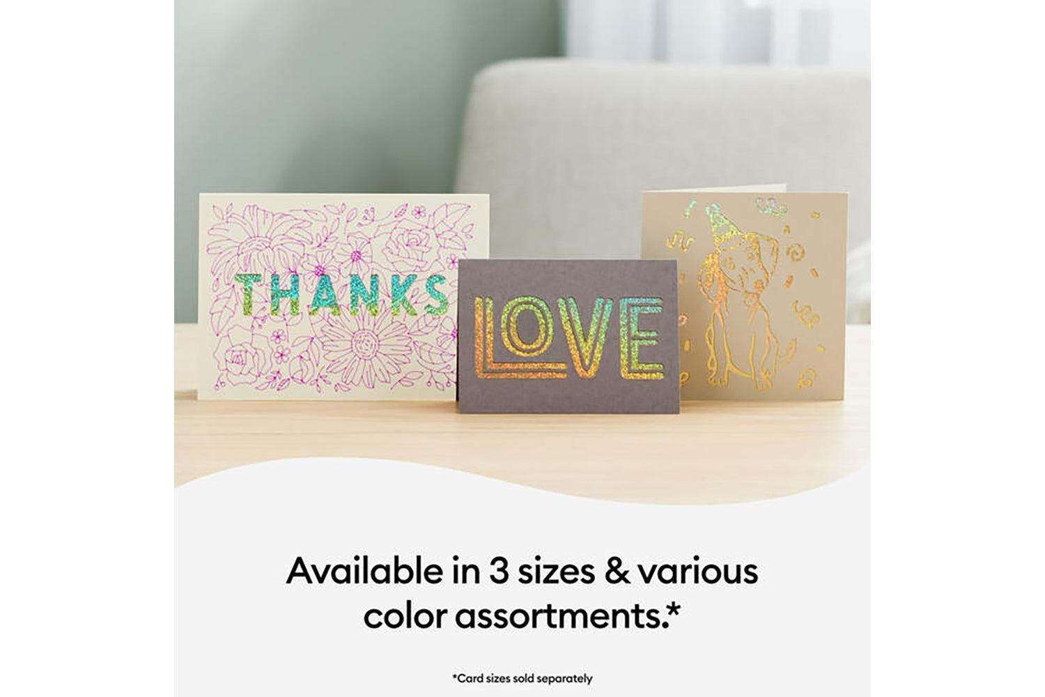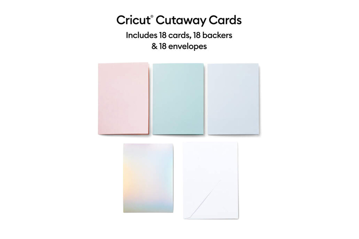 Create stunning, custom cards every time with Cutaway Cards for your Cricut cutting machine. Simply adhere your favorite stand-out backer, cut personalized messages in any font or design, weed away cutouts, and voila custom cards for every occasion. Includes envelopes so they are ready to send. Requires compatible Cricut Card Mat (sold separately). Available in a variety of sizes and colorways.