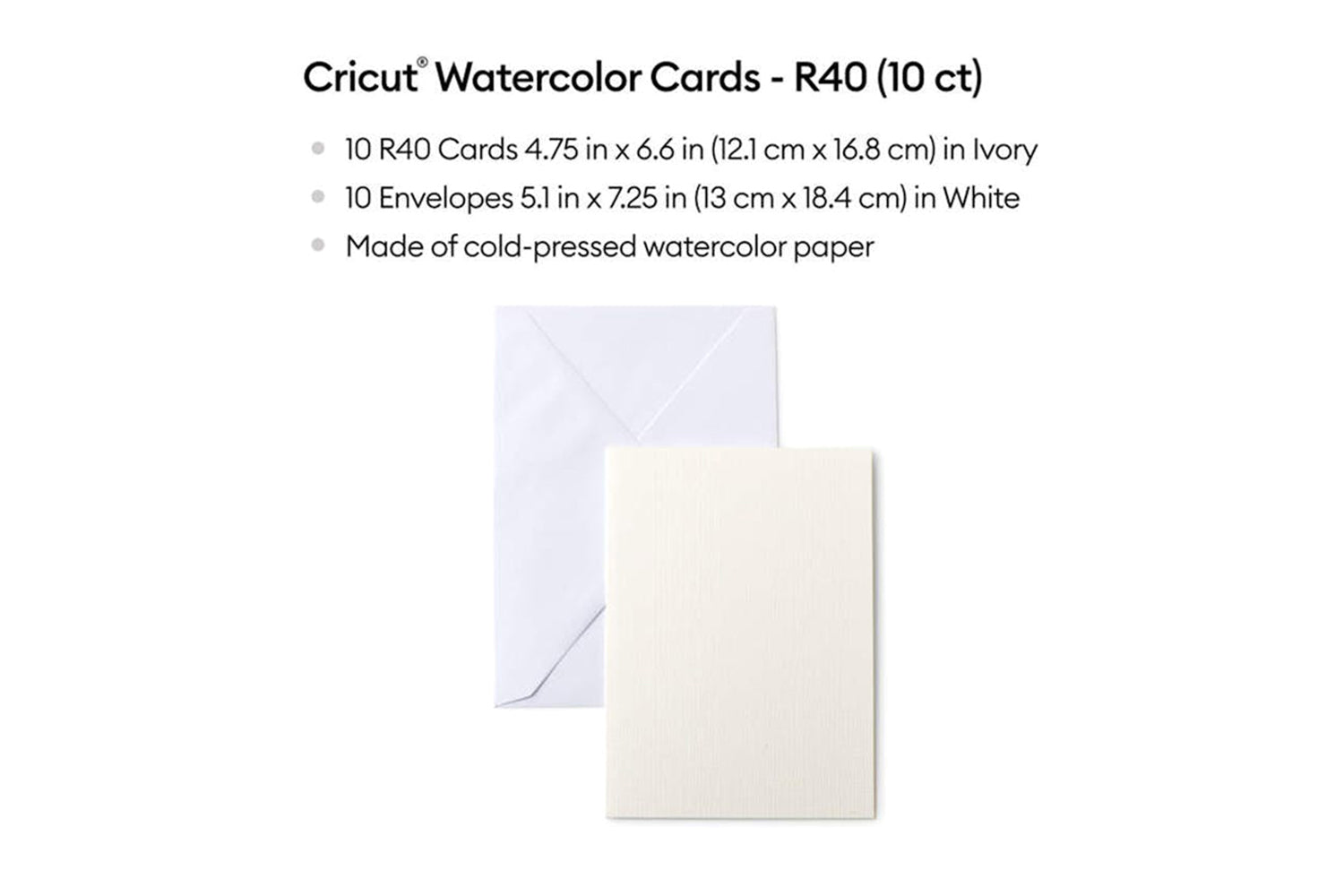 Made of cold-pressed watercolor paper, these cards are designed to bring your watercolor greetings to life. A thick 140 lb (300 gsm) paper weight means less buckling and warping when water is applied. Includes envelopes so they are ready to send. Requires compatible Cricut Card Mat (sold separately).