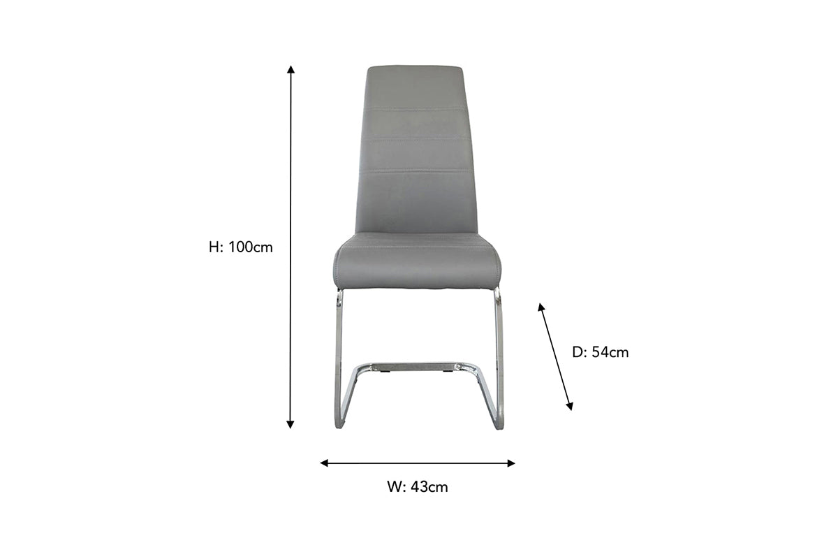 This modern chair is bursting with eye-catching details, like the chrome-finished stainless steel frame in a bold cantilever shape, and the sleek imitation leather upholstery. The curved back and stitched padding detail give it a quirky edge, and make it especially comfortable.