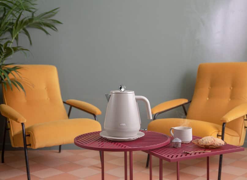 Celebrate your own uniqueness and eclecticism with the masterfully modelled De'Longhi Eclettica kettle. Its unmistakable design is rich in Italian style and complete with modern, gentle lines, making breakfasts and tea or coffee breaks a pleasure. This 3000W electric kettle with a 360° cordless base comes with a stylishly crafted saucer to reflect your mood.