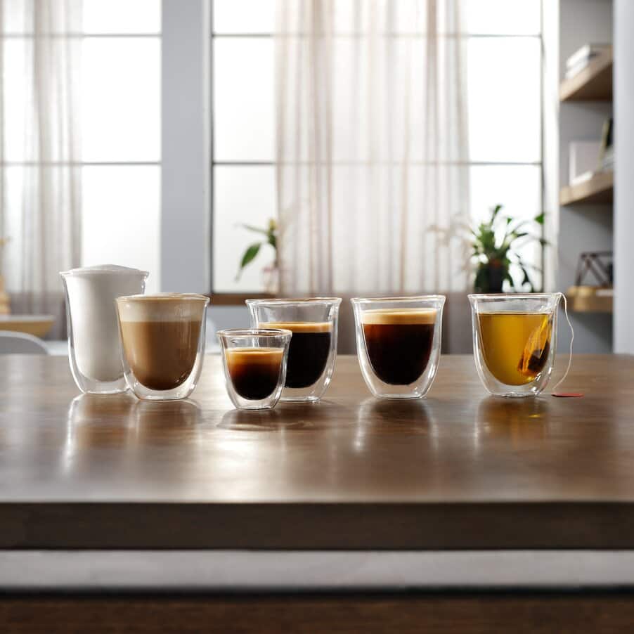 Enjoy a selection of coffee and milk based drinks,including 7 one-touch options:MyLatte,Cappuccino,Espresso,Coffee,Long,Latte Macchiato and Hot Water.