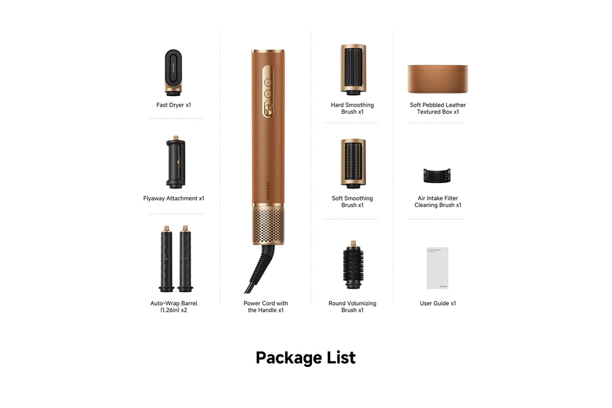 A perfect blend of aesthetics and functionality empowers you to style with confidence. The packaging ensures easy access and organized storage, while the pebbled leather handle provides a secure, comfortable grip for enhanced control.