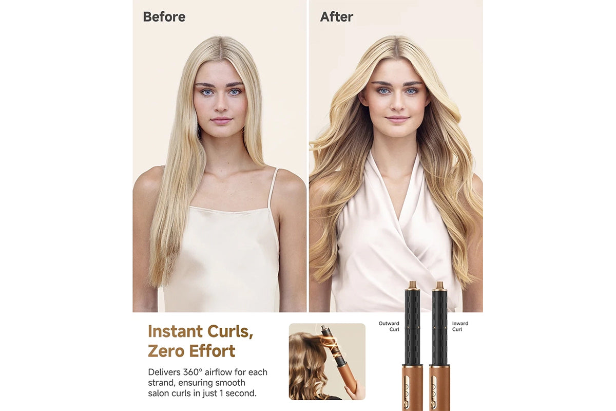 Easily switch between inward and outward curling attachments for versatile, salon-quality curls that fit any occasion.