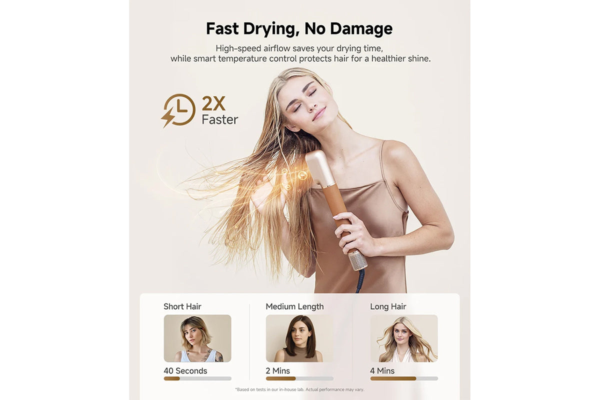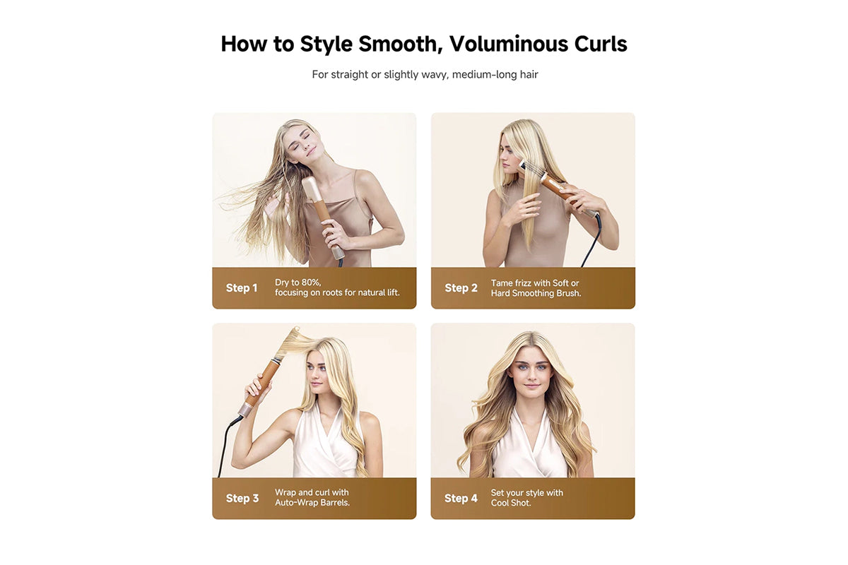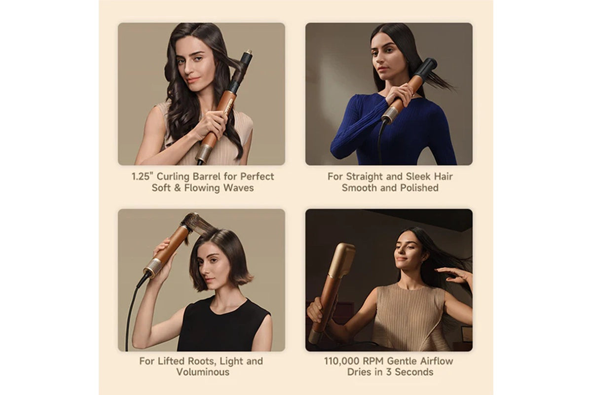 Harnesses high-speed jet airflow to expertly style your hair from wet to dry. Customize your desired look with professional precision at home.