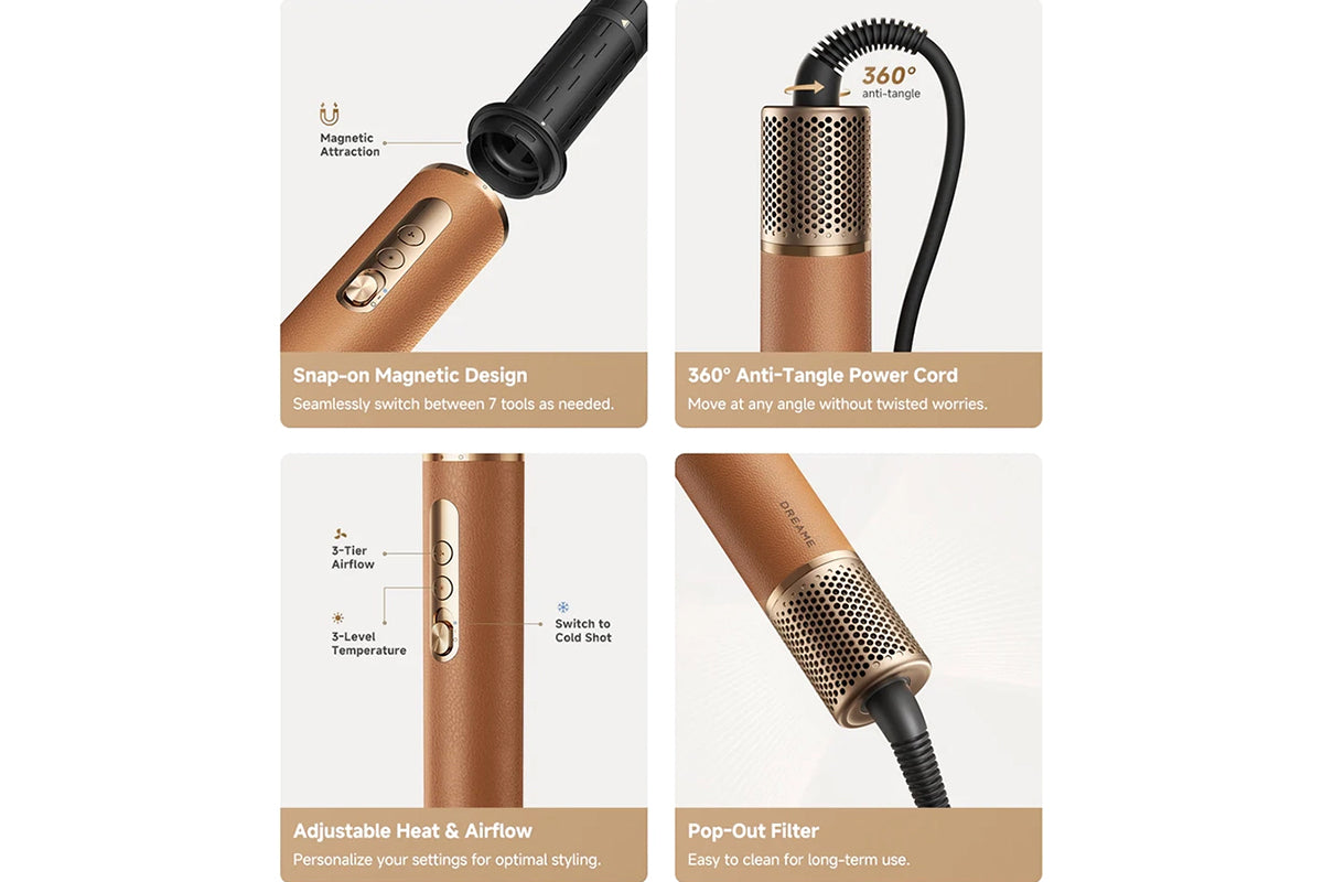 AirStyle Pro offers precise control to maintain a stable temperature, safeguarding your hair’s smoothness and shine.