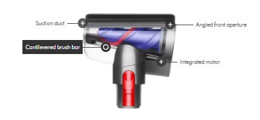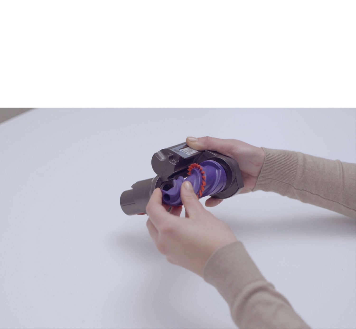 With Dyson anti-tangle technology. Threaded brush bar wraps and spins even the longest hair straight into the bin.