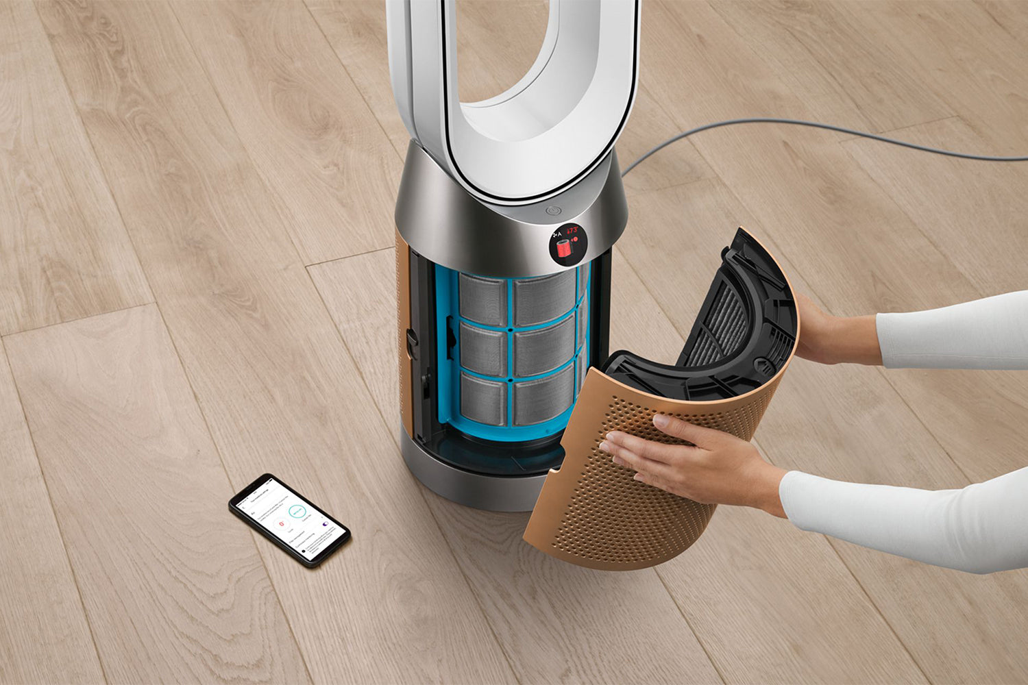 Changing the filter is quick and easy. The machine’s LCD screen and MyDyson app [6] notifies you when it needs to be replaced.