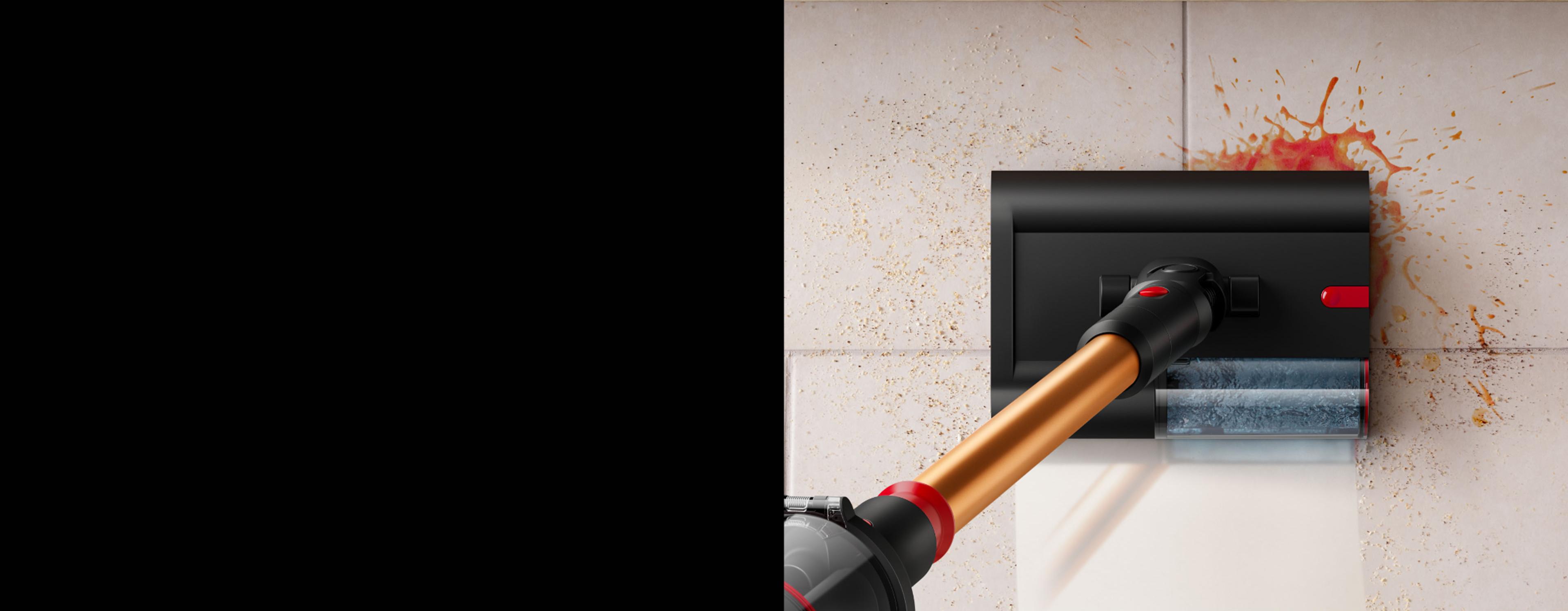 Submarine 2.0 wet roller head: Dyson latest Submarine wet roller head’s motorised microfibre roller washes spills and stains from hard floors. With a new max mode to wash away even tougher stains.