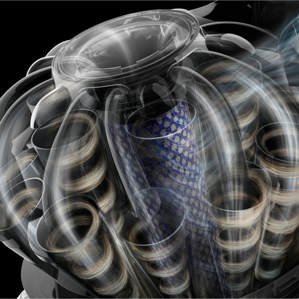 Two tiers of 15 radial cyclones generate high centrifugal force to capture microscopic dust with powerful, efficient suction.