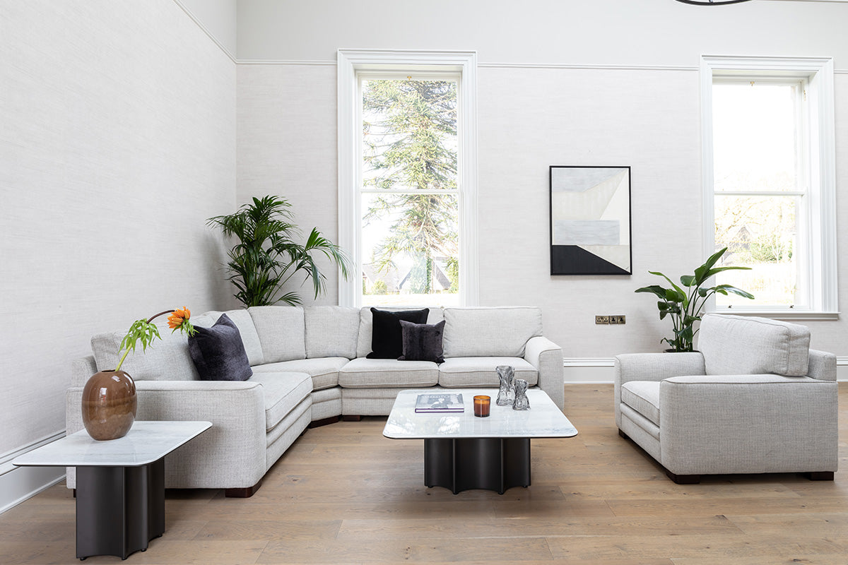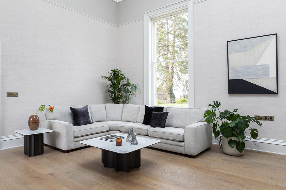 Timeless details such as the curved arms, sturdy feet, and plump cushioning ensure that the Eden corner sofa will be a staple item in your home for years to come. Get started with choosing from the myriad of fabrics and colours available complement your existing aesthetic. Complete the look with the wooden leg options available to further elevate your look. Finally, choose the comfort option that suits you best from a wide range of options such as high-density foam, to high quality fibre or feather and fibre mix.